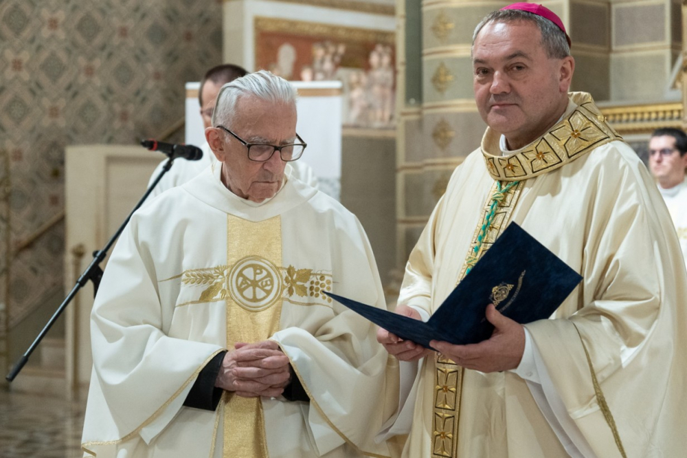 A liturgiában adták át Simon Ferenc János tiszteletbeli esperes, nyugalmazott plébános címzetes apáti kinevezését is.