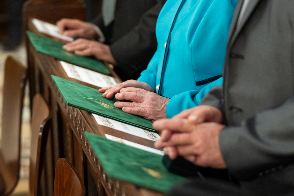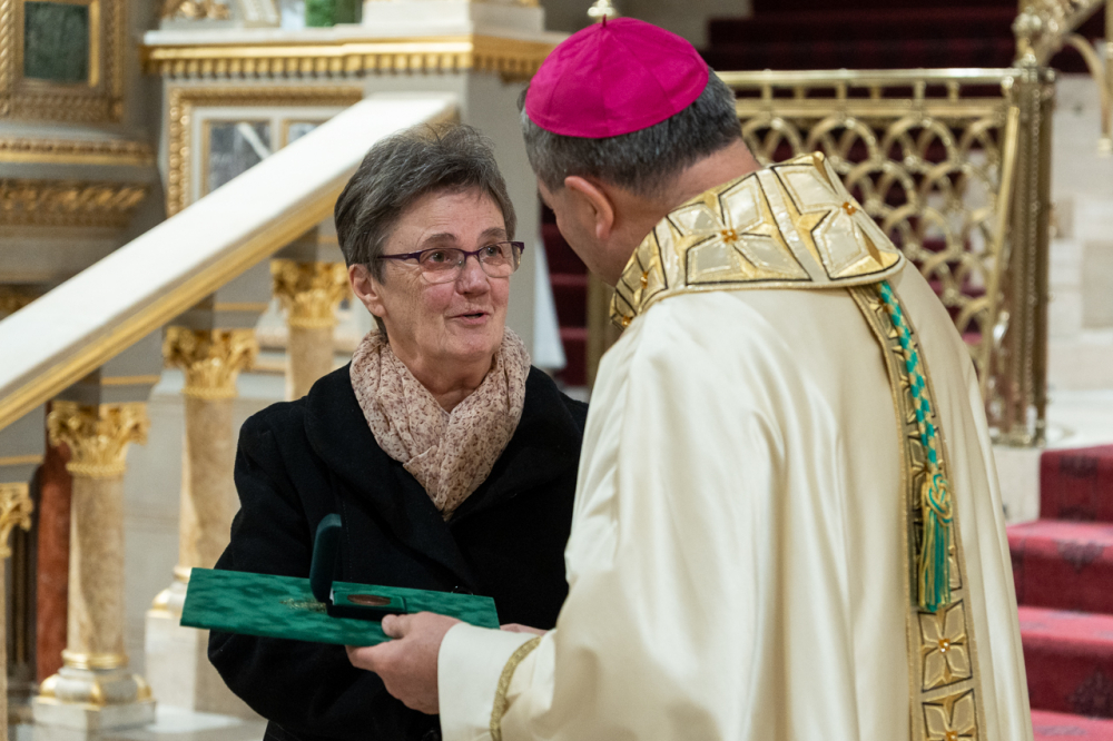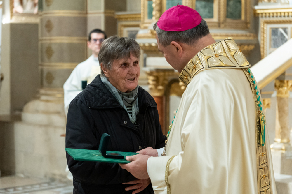 Felföldi László püspök a kitüntetettekhez fordulva úgy fogalmazott: „Fogadják a mi hálaadásunkat és köszönetünket azért az útért, azért a sok-sok évért, amit megtettek a saját egyházközségükben, a saját közösségükben és erősítsék meg azokat, akik tovább akarják vinni ennek a fénynek, ennek a szolgálatnak, az örömhírnek az éltető, életadó kincsét és biztonságát. Legyünk bátrak mi is önzetlenül, a sebeket eltakarva, örömmel Krisztus mellé állni, az egyházközségeink mellé állni” – zárta a köszönet szavait a püspök.
