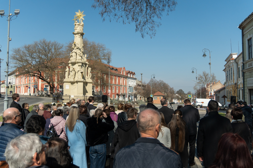A település központjában található, idén 230 éves emlékmű nem csupán műalkotás vagy városi nevezetesség, hanem hitünk, hagyományaink és közösségeink jelképe. A közelmúltban gondosan felújított köztéri szobrot Felföldi László pécsi megyéspüspök áldotta meg március 8-án. Az ünnepi alkalmon jelen volt Wigand István bonyhádi plébános is.