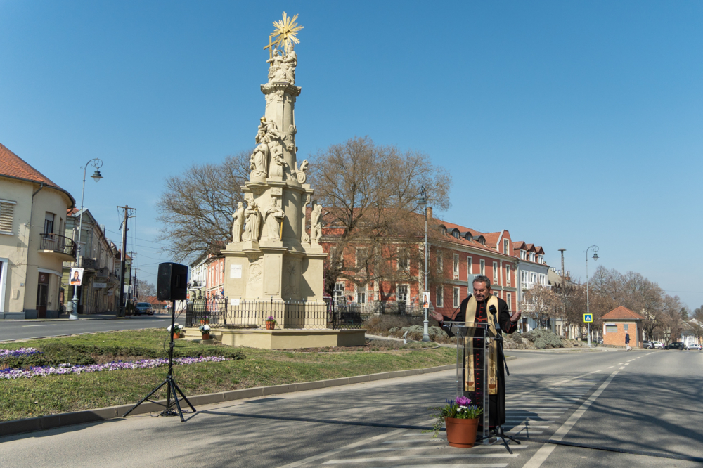 Felföldi László püspök a szobor megáldása előtt mondott ünnepi köszöntőjében a 18. századi Bonyhádra tekintett vissza, amikor a településen járványok és tűzvészek tették próbára az embereket, akik megérezték, hogy a bajban csak teljes összefogással, lelki, közösségi, Istenre és egymásra figyelő közösségben lehet kiutat találni.
