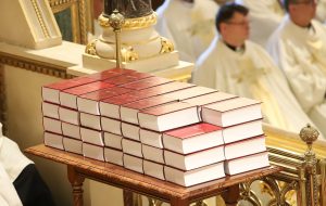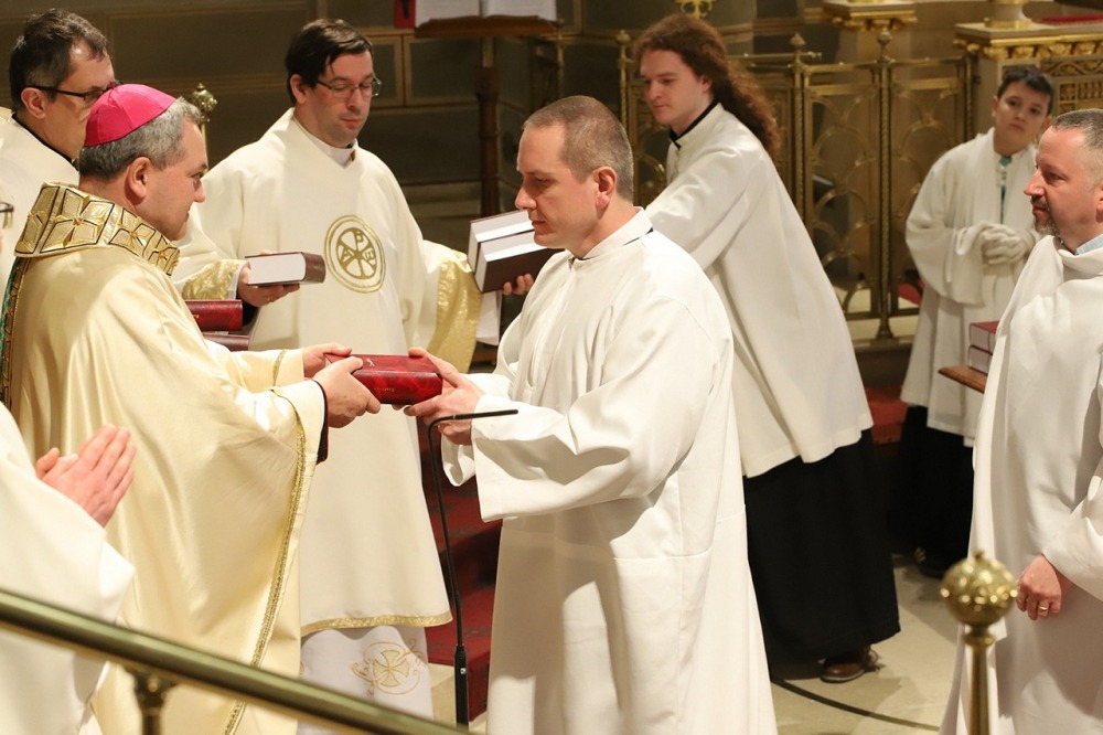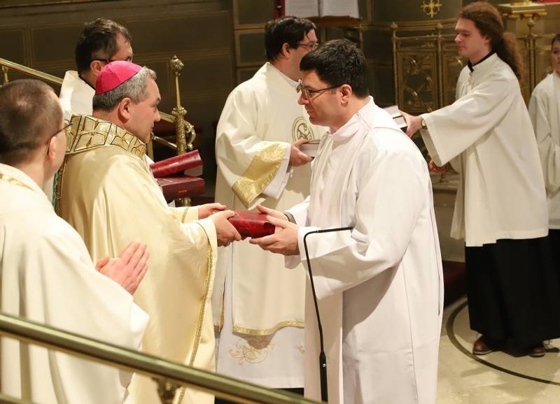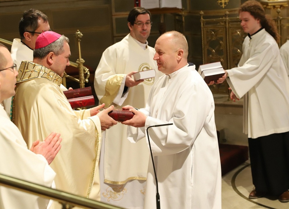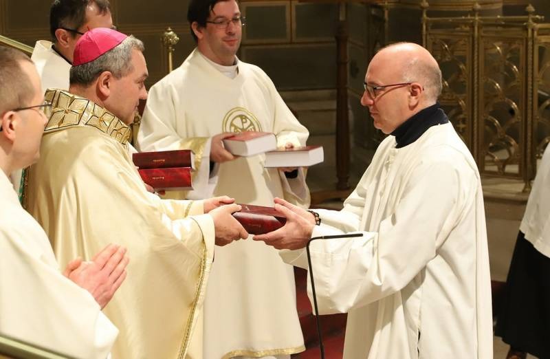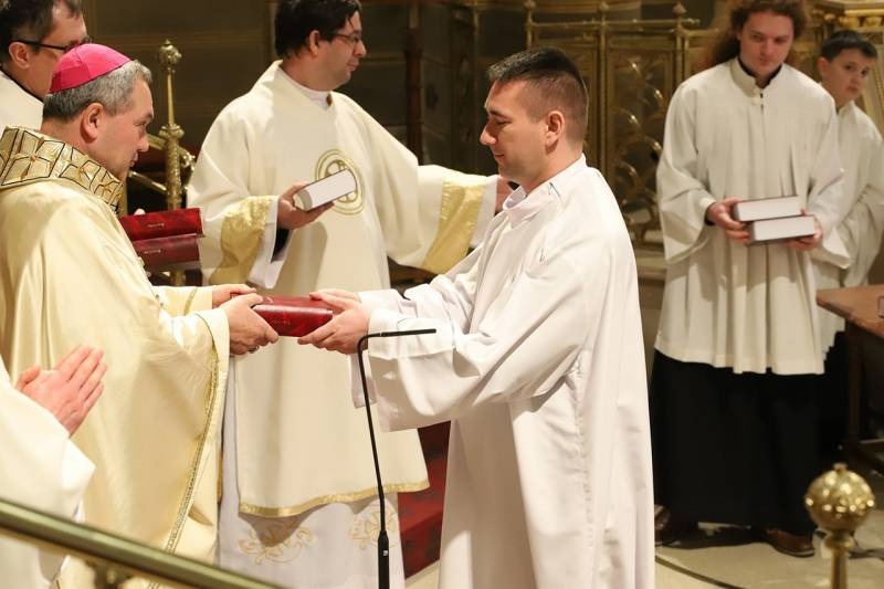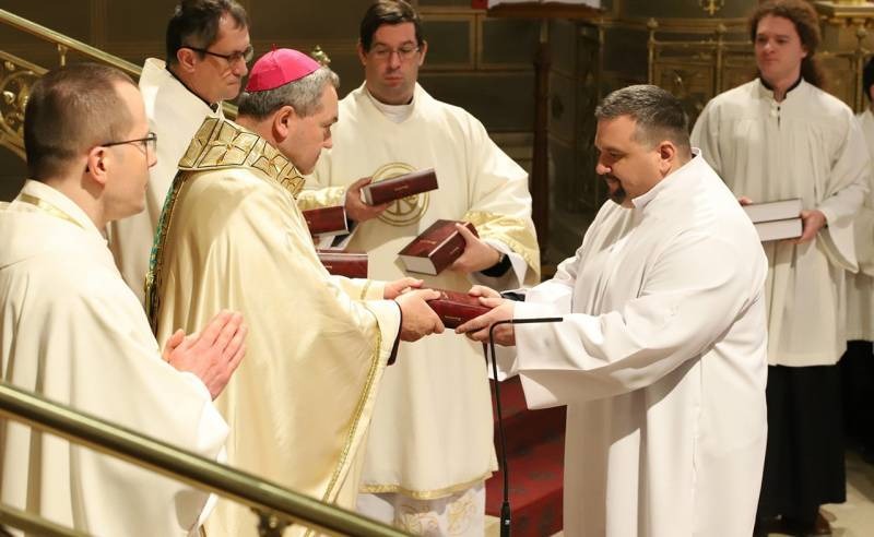 Néhány perc múlva a kezetekbe adom a Bibliát, a Könyvek Könyvét – figyelmeztette a jelölteket a püspök, majd Leó pápát idézte, aki egy korábbi alkalommal elmondta, a Szentírás főként a liturgia keretein belül ma is szól a hívekhez, meg akarja érinteni jelenlegi életüket, problémáikkal együtt, megvilágítani előttük az utat és a döntéseket, amelyeket meg kell hozniuk. Ez csak akkor válik lehetségessé, ha a hívő a Szentlélek vezetésével olvassa és értelmezi a szent írásokat, aki ihlette azokat. Ebben az értelemben a Szentírás arra szolgál, hogy táplálja a hívek életét és szeretetét.