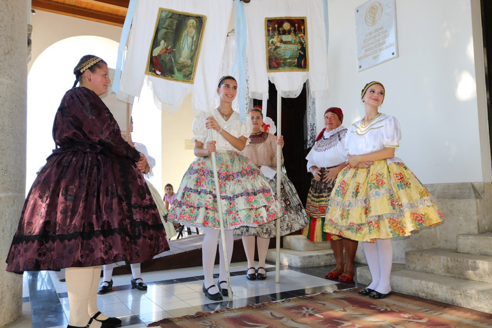 A zarándokok - köztük sok kisgyermekes, babakocsit toló család - idén igazi nyári időjárási körülmények között tették meg a rövid pihenőkkel megszakított, Mohácstól 22, illetve Bátaszékről 11 kilométeres távolságot a kegyhelyig, ahol Sümegi József diakónus fogadta az érkezőket.