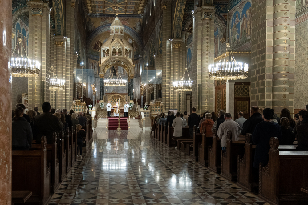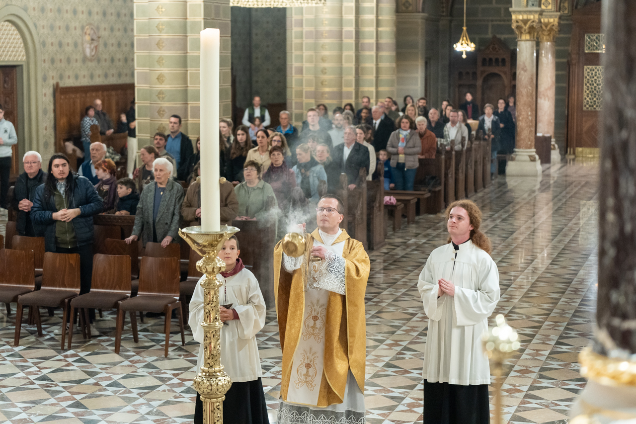 A liturgia zárásában a húsvéti gyertya fényénél imádkoztak az örök hazába eltávozott, elhunyt testvérek lelki üdvösségéért.