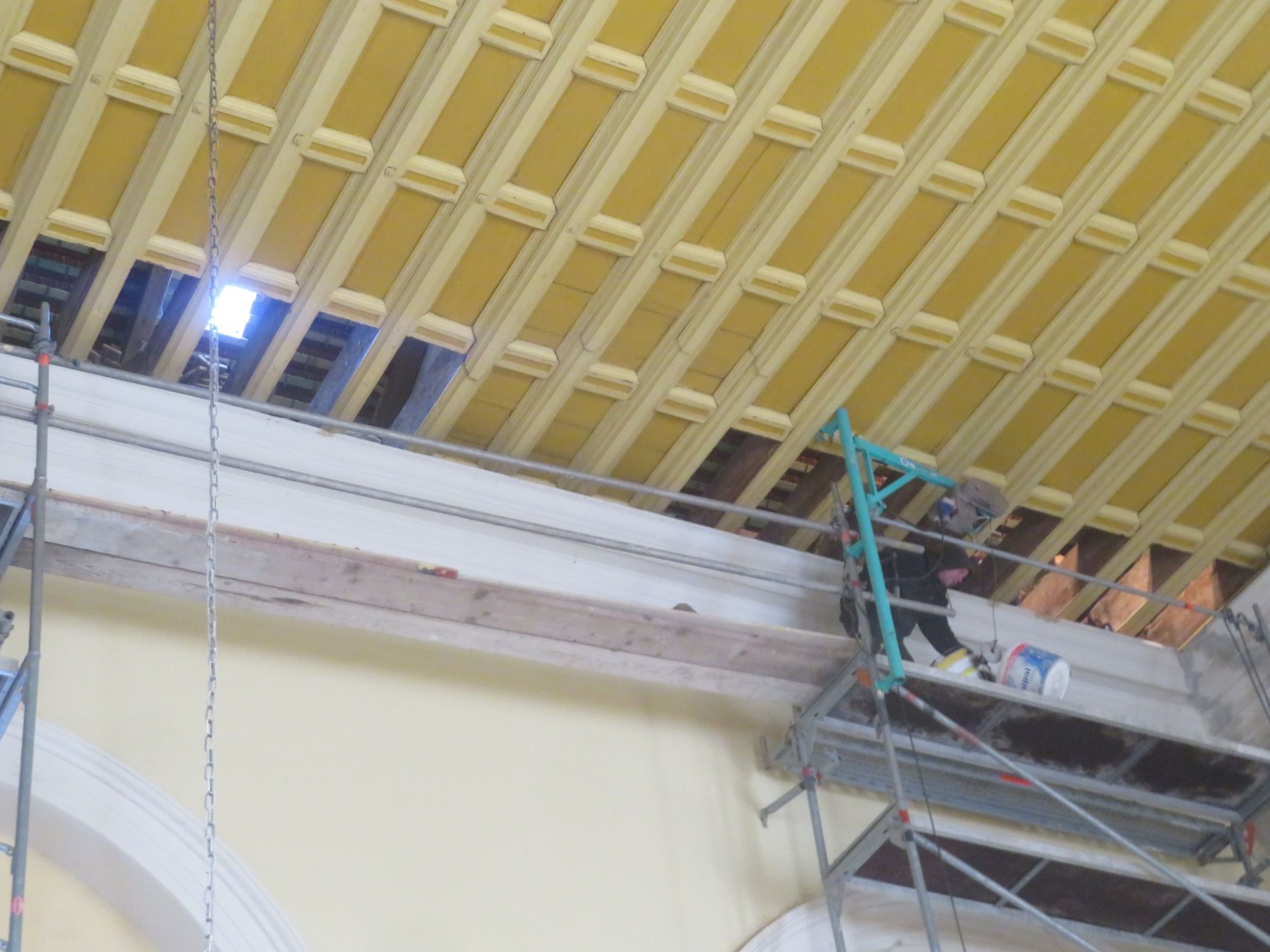 Kicserélik a károsodott fiókgerendákat és deszkabetéteket, a hozzáférhető fa elemek pedig speciális védőszeres kezelést kapnak, ezt követi majd a födém deszkaborításának visszaépítése a korhadt elemek cseréjével.
