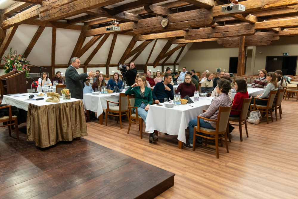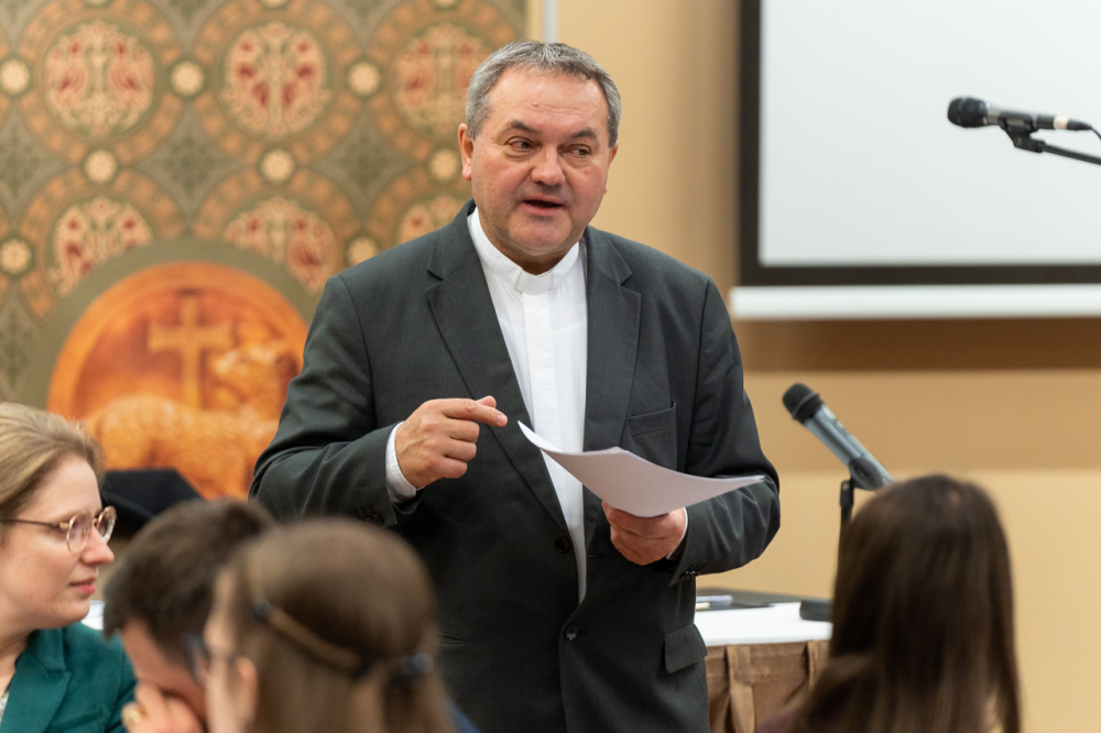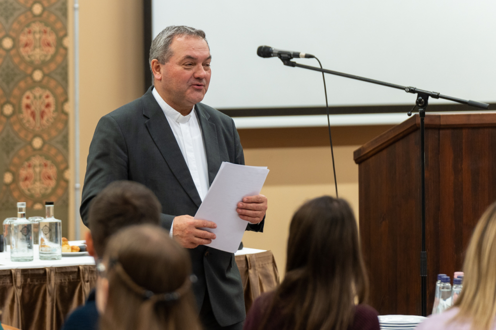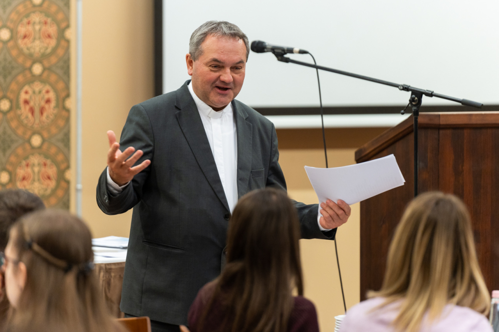 A résztvevőket az a kérdés is foglalkoztatta, hogyan ismerhető fel Isten hangja személyes életünkben a mai világ Istentől elfordult zajában. A püspök az ószövetségi Sámuel próféta Istennek adott válaszát hívta segítségül: „Szólj, Uram, mert hallja a te szolgád!” (1Sám 3,9) – rávilágítva, hogy a lelki csend, a figyelem és a nyitottság a kulcs a párbeszédhez.