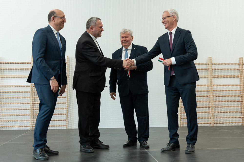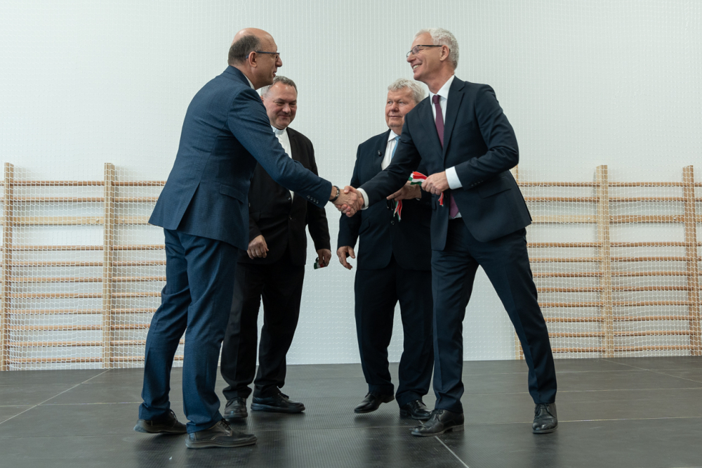 Az nemzetiszínű szalag ünnepélyes átvágását követően az átadás az intézmény új épületeinek bejárásával folytatódott.