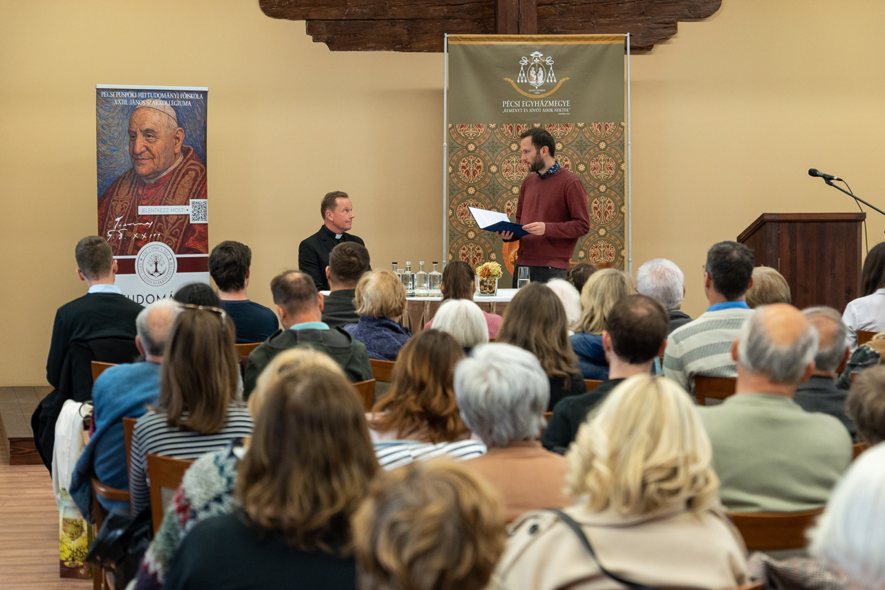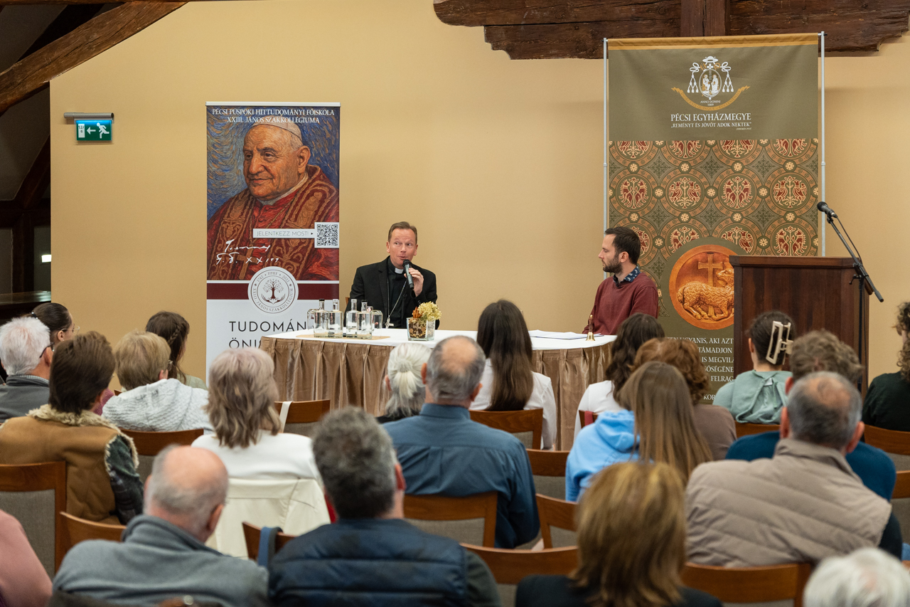 Az Esztergom-Budapesti Főegyházmegye segédpüspöke a Pécsi Püspöki Hittudományi Főiskola XXIII. János Szakkollégiuma Horizontok című szakmai műhelyének meghívására április 20-án érkezett Pécsre. Az idén január elsején indult Biblia egy év alatt című podcast-sorozat házigazdája a Magtár Látogatóközpontban kalauzolta az érdeklődőket a Szentírás olvasásának és értelmezésének módszertanában.