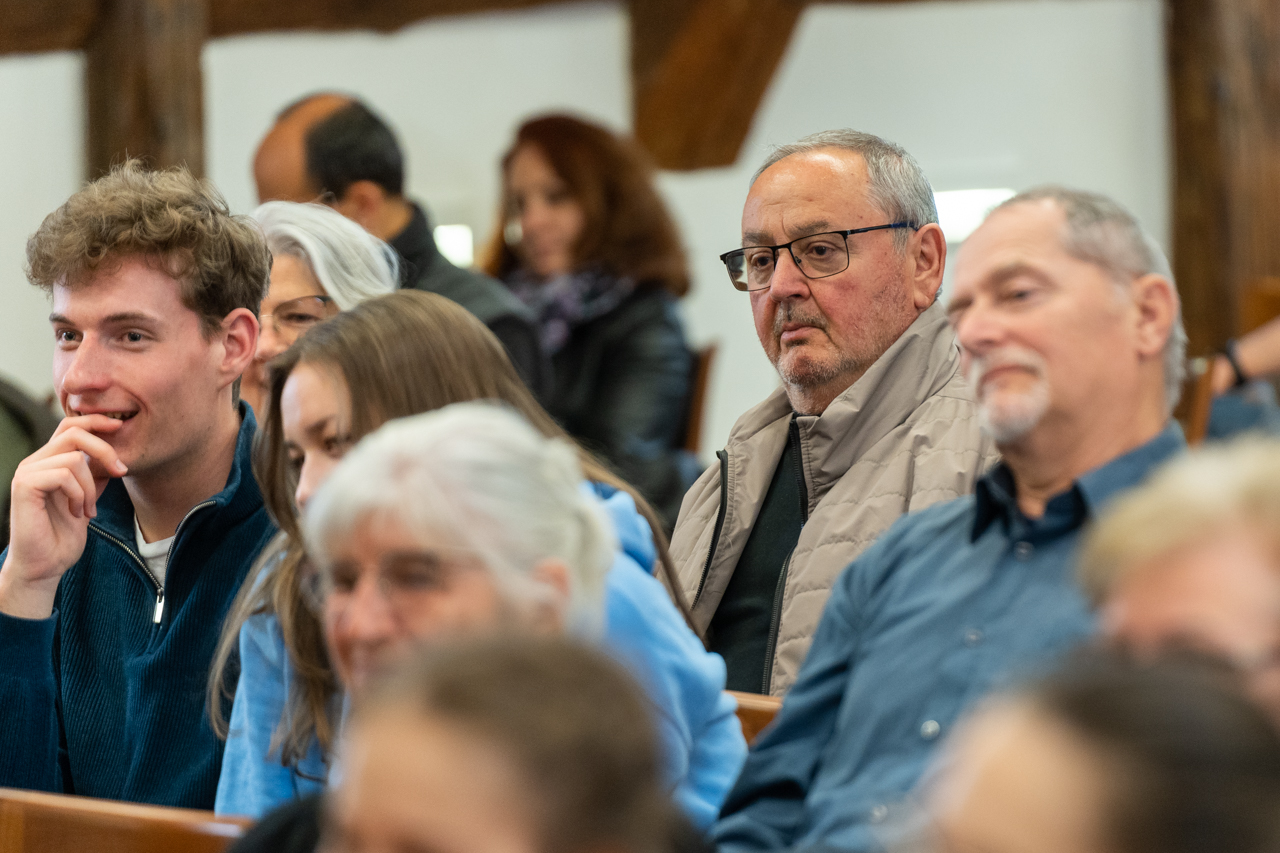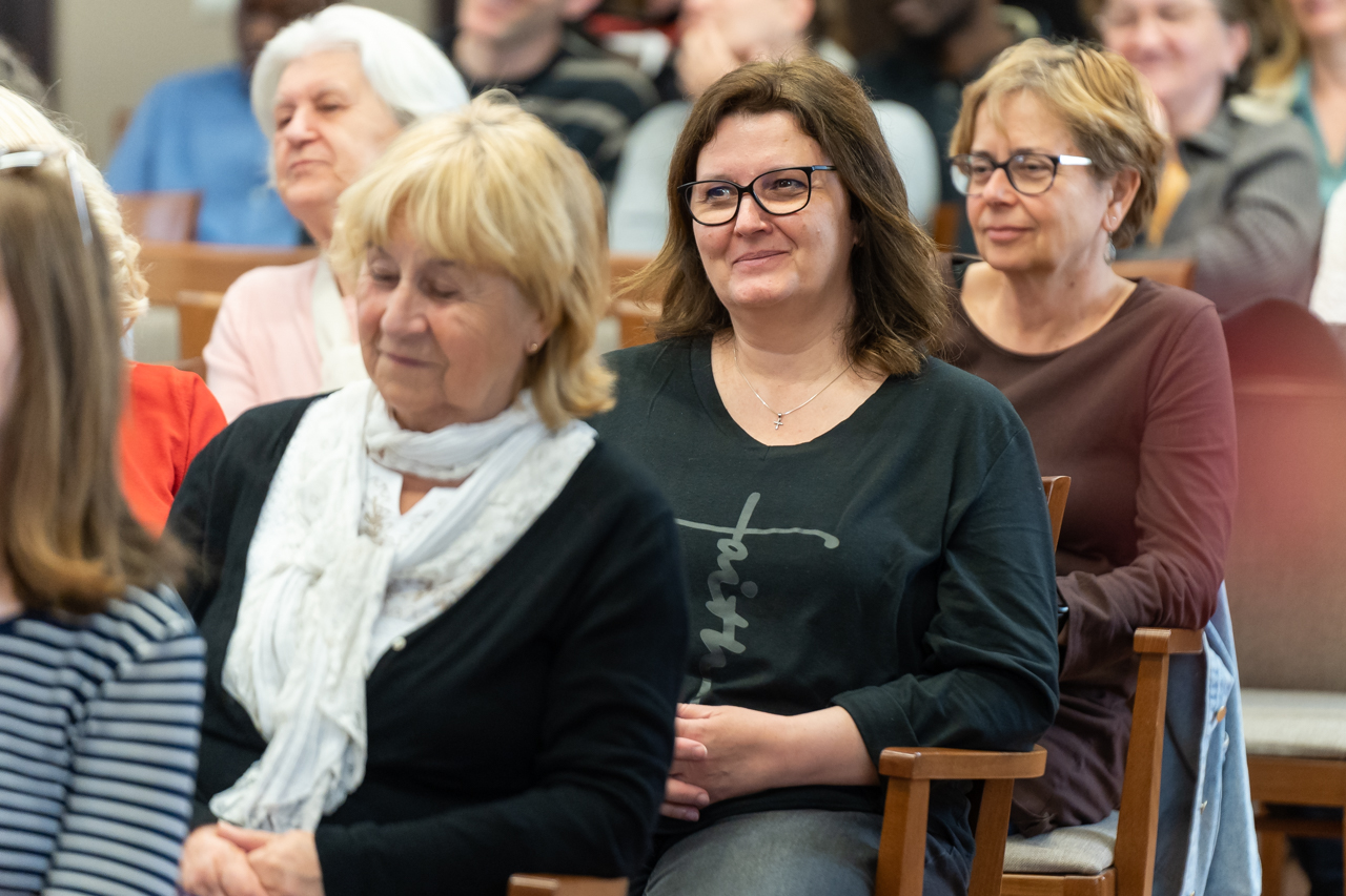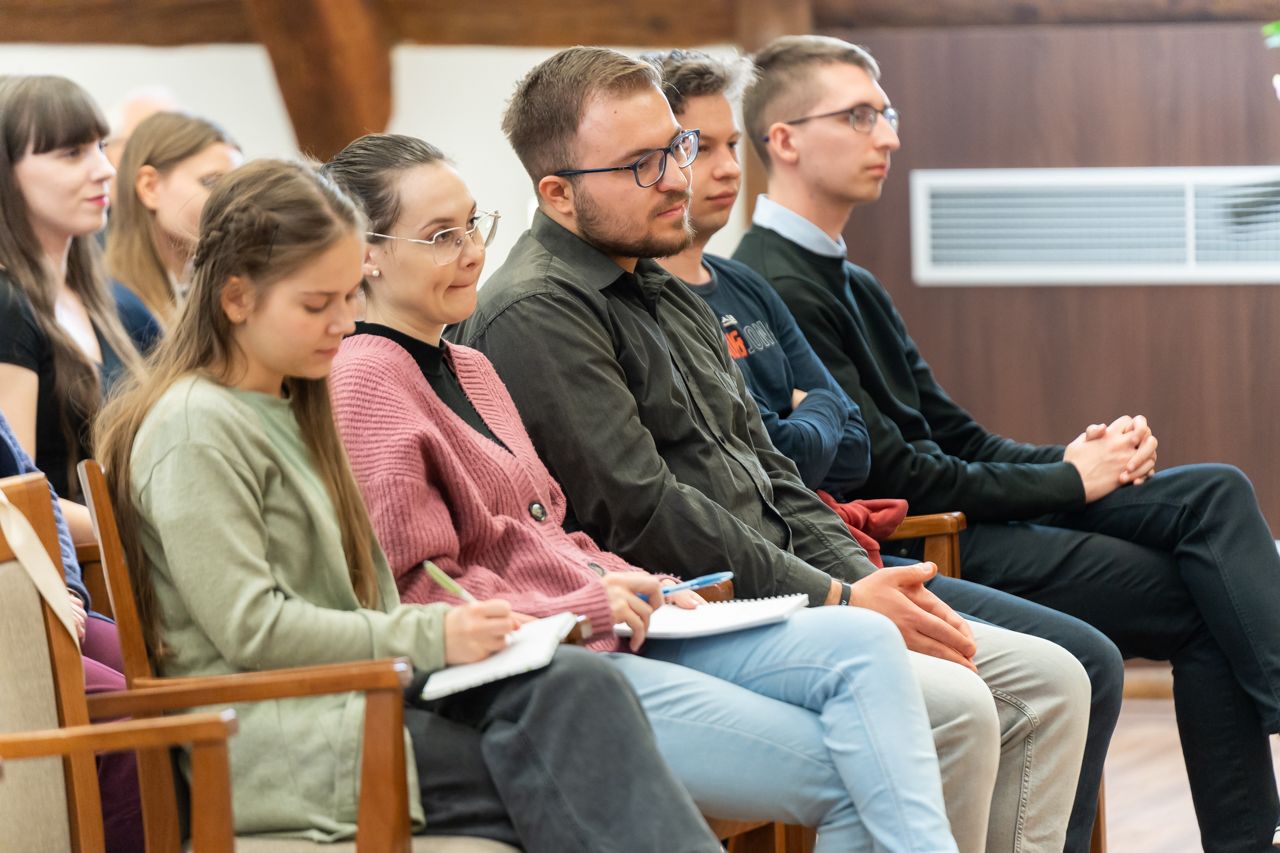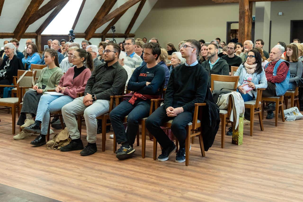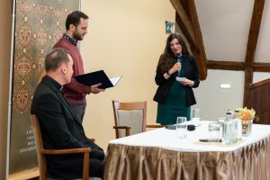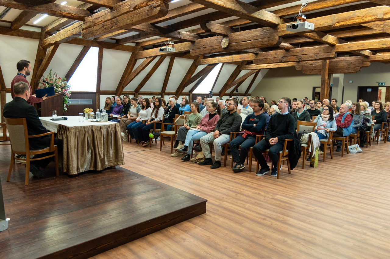 A jó hangulatú beszélgetésben Fábry Kornél megosztotta a hallgatósággal egyetemista éveinek néhány meghatározó mozzanatát a Bibliával való elmélyültebb találkozásának emlékeiről, melyen keresztül, mint mondta, megtapasztalta Isten elfogadó szeretetét, mely végül a papi hivatás kibontakozását jelentette számára.