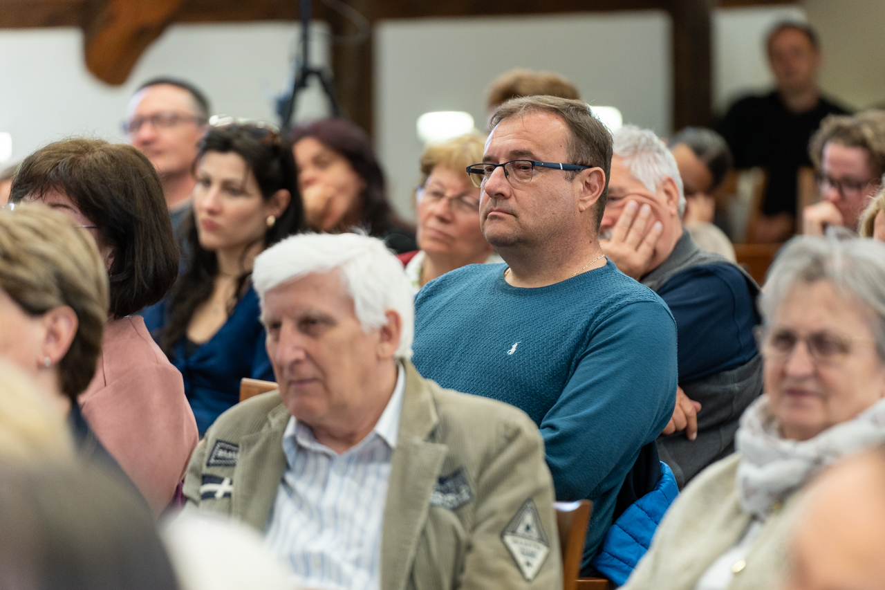 Dr. Lukács Ottilia rektor, aki Bibliaismeretet és Bibliai hébert oktat a PPHF-en, Felföldi László pécsi püspök távollétében köszöntötte Fábry Kornélt, majd kifejezte örömét, hogy a főiskola falain kívül sikerült megrendezni a sorozat aktuális állomását, így a témával nemcsak a hallgatókat tudták megszólítani.