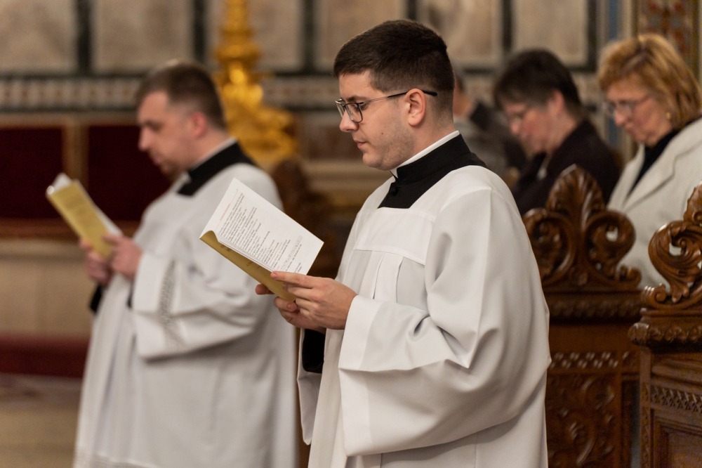 A székesegyházban végzett sötétzsolozsma szertartásán a zenei szolgálatban közreműködött a pécsi székesegyház Palestrina Kórusa, vezényelt Jobbágy Valér.