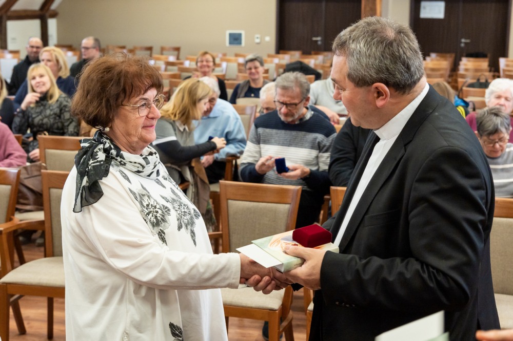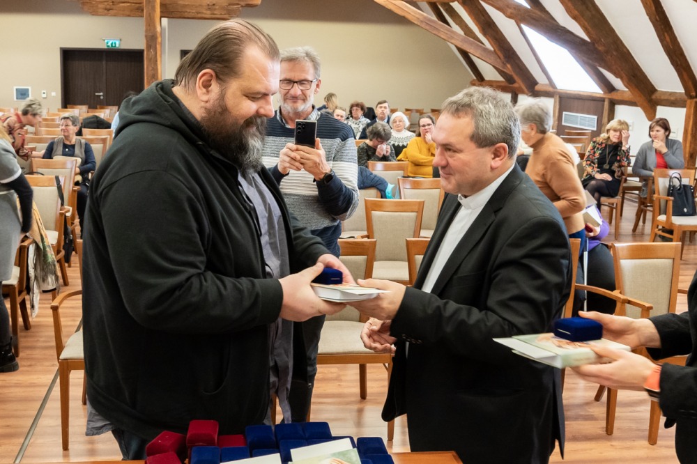 Az előadás után a főpásztor egy-egy emlékplakettel és a lelki elmélyülést segítő könyvvel személyesen köszönte meg minden egyes beteglátogató önkéntesnek a szolgálatát.