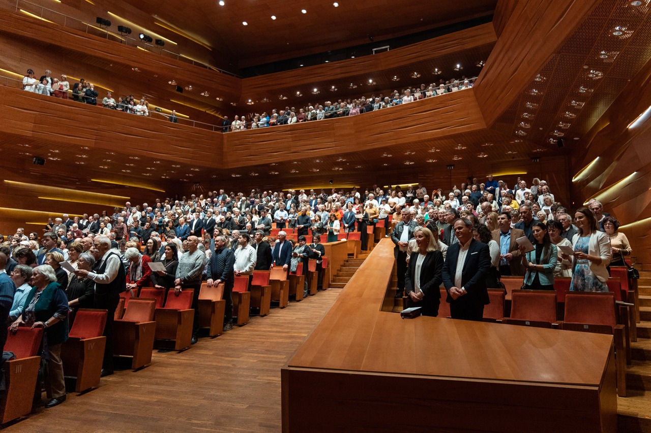A hangverseny záró énekét a hagyományok szerint ezúttal is az előadókkal és a fellépőkkel együtt, állva énekelte a publikum.