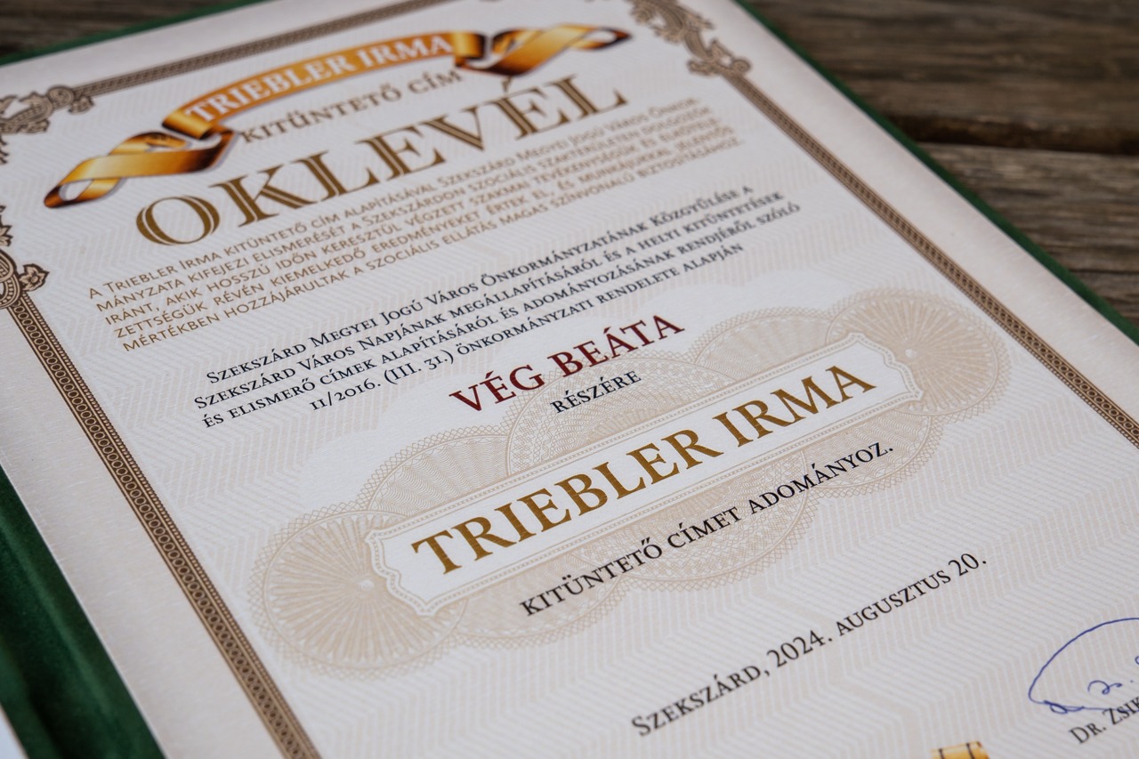 – A nyilvánosságot kapott jótékonysági akciók mellett a beteglátogatás csendes pillanatai sem maradnak már titokban. Az Ön által végzett szolgálatot a Triebler Irmáról elnevezett kitűntető címmel ismerte el Szekszárd Megyei Jogú Város Önkormányzata augusztus 20. alkalmából. Ezt a díjat az kapja, aki szakmai tevékenysége és elkötelezettsége révén jelentős mértékben hozzájárult a szociális ellátás magas színvonalú biztosításához. 2024-ben Önnek ítélték ezt az elismerést. Hogy fogadta?