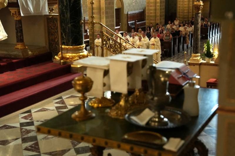 A liturgián koncelebrált Bíró László nyugalmazott tábori püspök és Máger Róbert, püspöki irodaigazgató, a székesegyház plébánosa. Az ünnepi szentmise szónoka a pappá szentelésének 50. évfordulóját idén ünneplő aranymisés lelkipásztor, Ronta László harkányi plébános volt.
