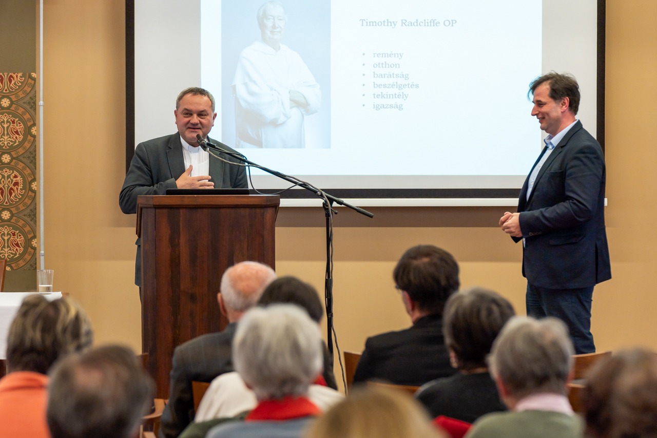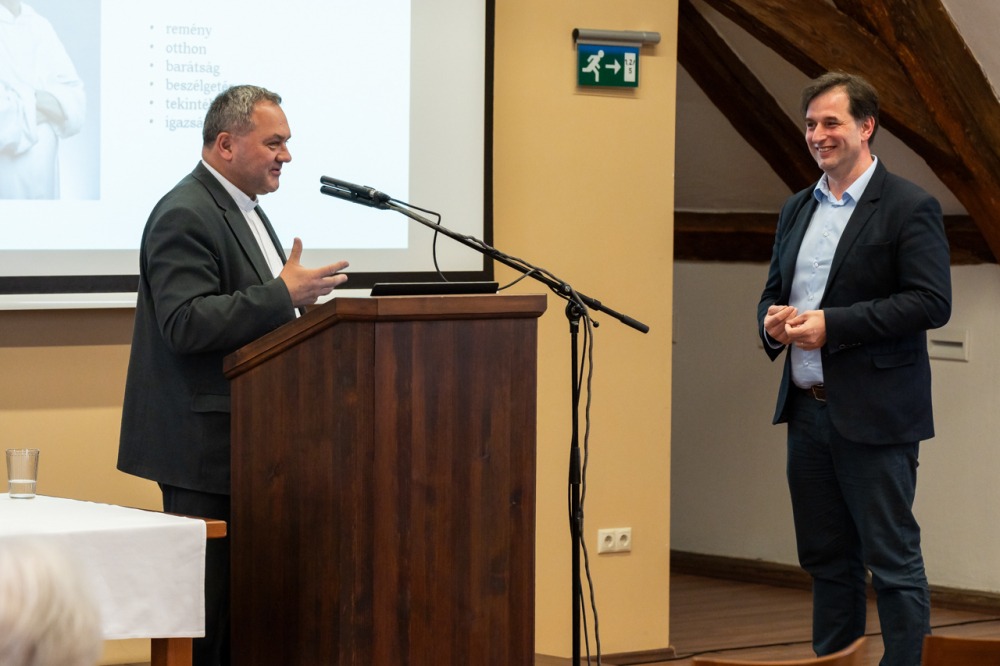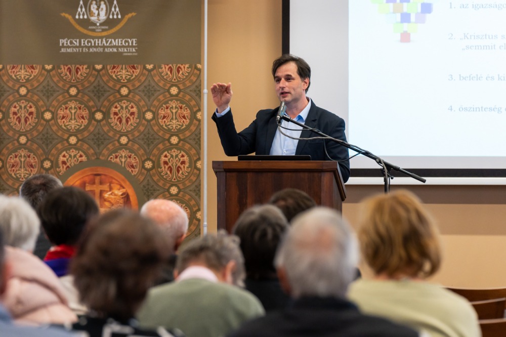 Ha ezeket a feltételeket nem sikerül egyházi közösségeinkben megvalósítani, bezárkózóak és taszítóak leszünk a közösségeinket kívülről szemlélők számára. Márpedig a világunk éhezik az igaz hangokra. Az Egyháznak pedig igaz hangokból álló üzenete van, amely át tudja alakítani az emberi életet és megoldást tud kínálni számtalan problémára – mutatott rá előadásában Görföl Tibor.