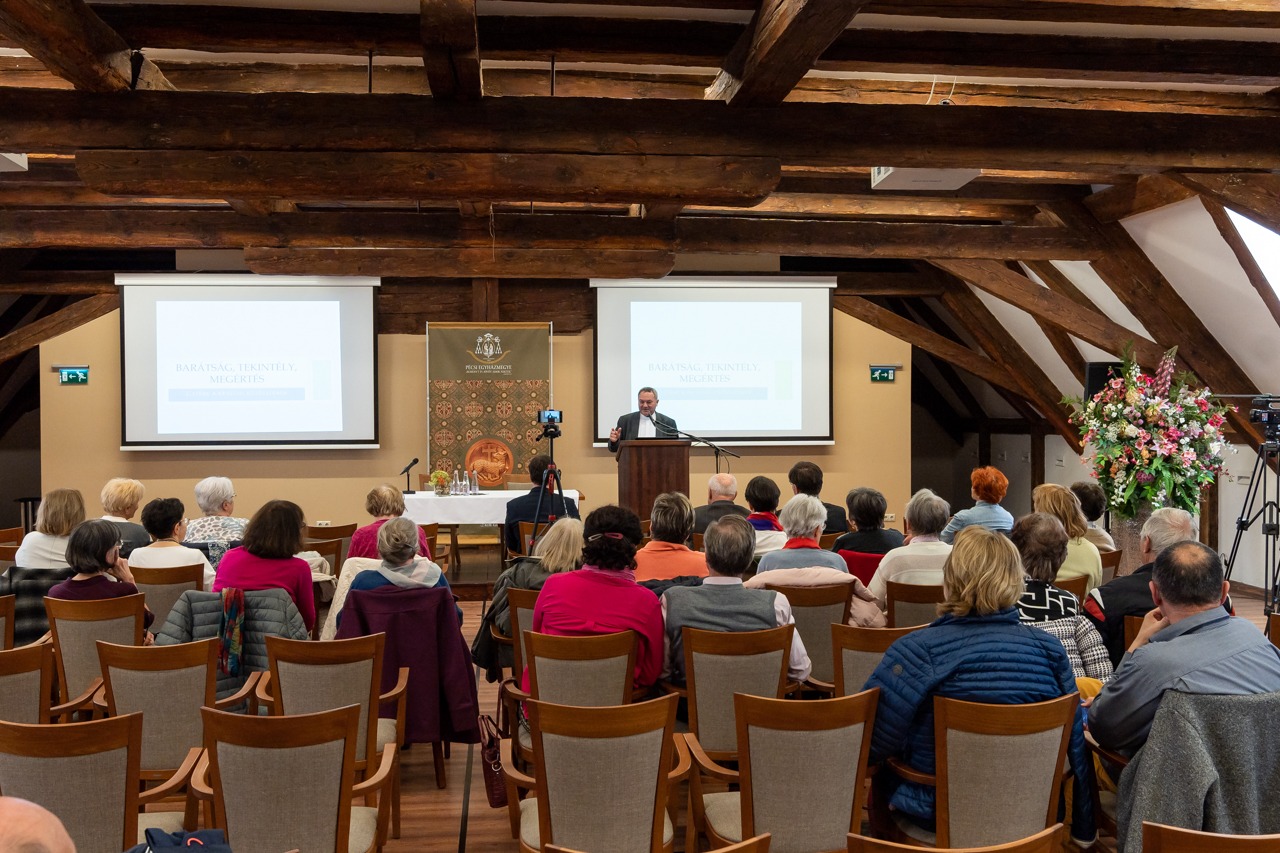 Nem a szabadidő hasznos eltöltése és nem is a hasonló gondolkodású emberek társasága, hanem a krisztusi szeretetet kapcsolja közösséggé az Egyházat – emelte ki a Magtár Látogatóközpontban február 28-án megtartott szabadegyetemi előadásában dr. Görföl Tibor teológus, egyetemi docens, a Vigilia folyóirat főszerkesztője. Az előadás-sorozat nyitó alkalmán Felföldi László, a Pécsi Egyházmegye püspöke, a rendezvénysorozat házigazdája köszöntötte az érdeklődőket.