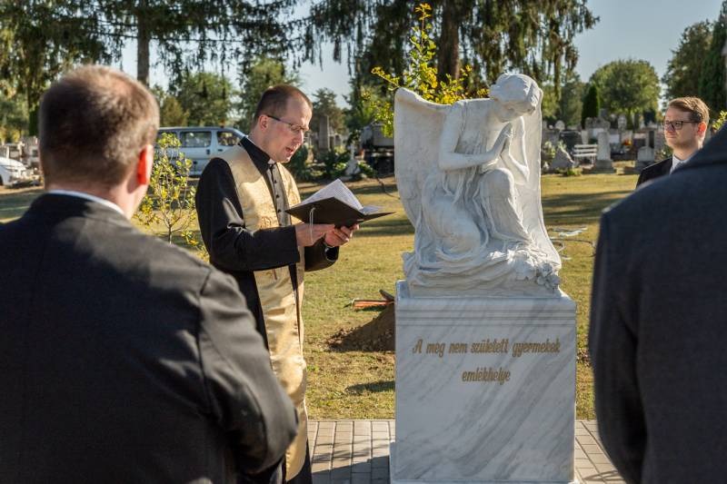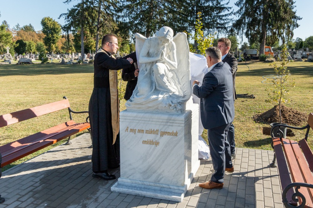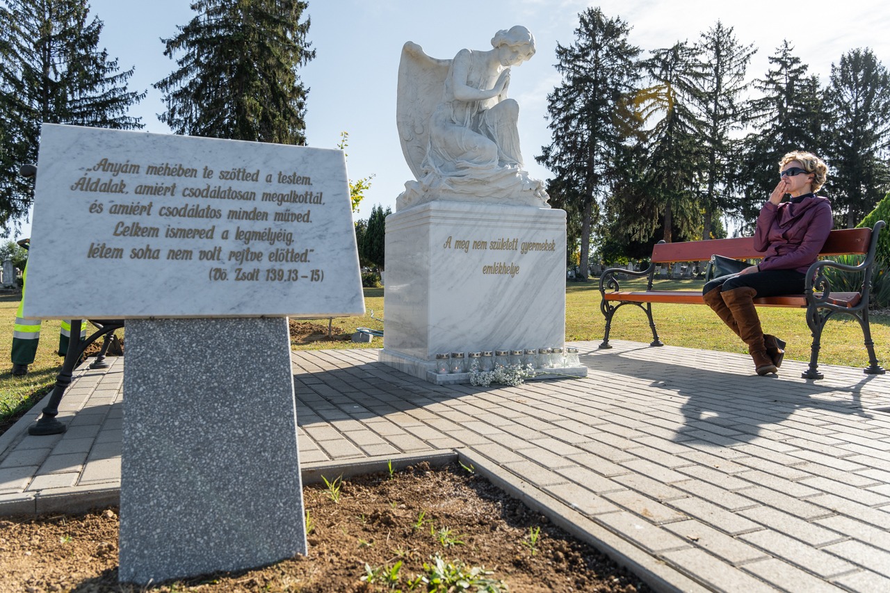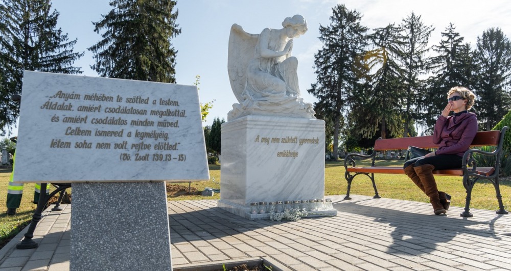 A meg nem született gyermekeknek állít emléket a pécsi köztemetőben felállított angyal szobor