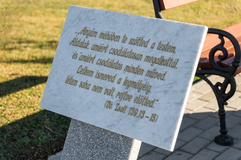 A veszteség feldolgozásában nagyon fontos a kiengesztelődés Istennel, önmagunkkal, a meg nem született magzattal és másokkal is – hangsúlyozta Máger Róbert. Erre ad lehetőséget ez a hely, ahol bárki helyet foglalhat, csendesen megállhat, hogy lelkének nyugalmat keresve imádkozzon azokért, akik nem születhettek meg, akikről nem tudjuk, miként nézhettek volna ki, akiknek nevet sem adhattak szüleik, akiknek még sírhely sem adatott a temetőben. Ők már az Istennél vannak. Földi életük éppen csak elkezdődött anyjuk méhében és idő előtt véget is ért. Ugyanakkor az életüket egy sokkal nagyobb távlatban, az örökkévalóságban szemlélhetjük, melyben oldódhat a gyász és a szomorúság – emelte ki a lelkipásztor.