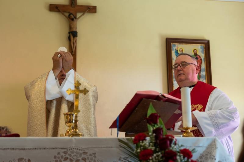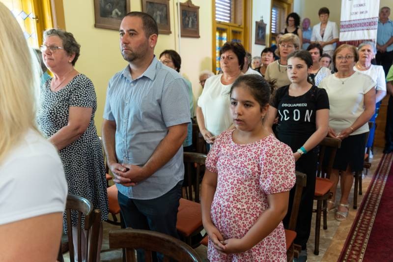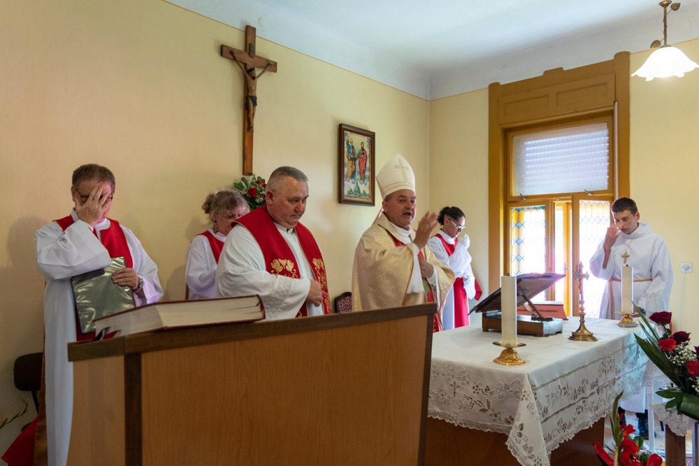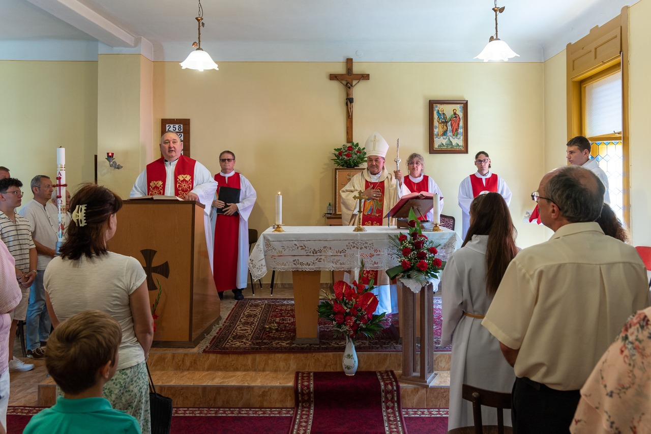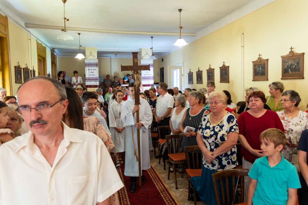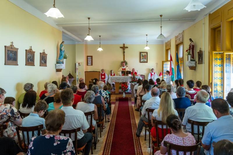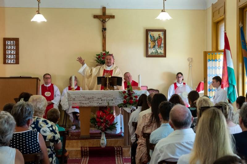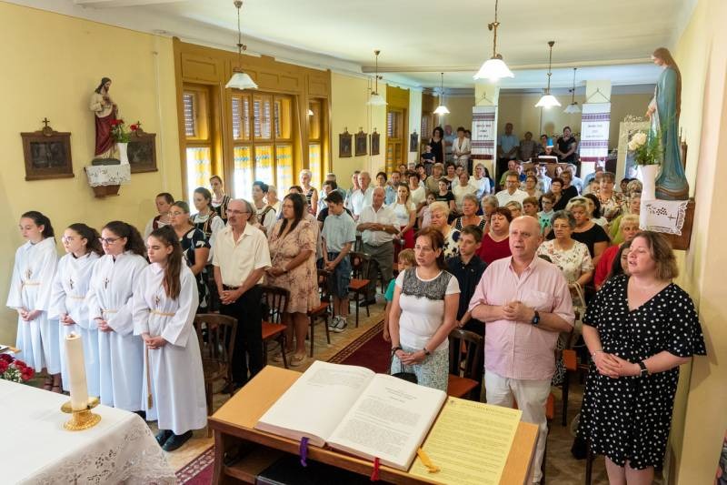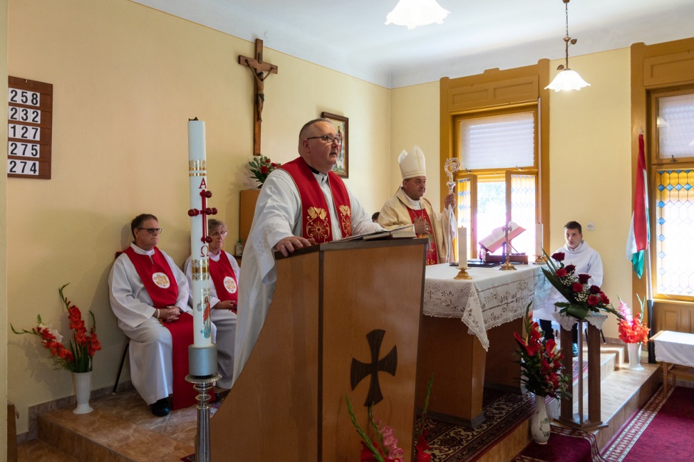A liturgián koncelebrált Vida Zsolt plébános. Az ünnepi alkalomra megtelt imaházban jelen volt a település polgármestere, Kelemen Ferenc is.