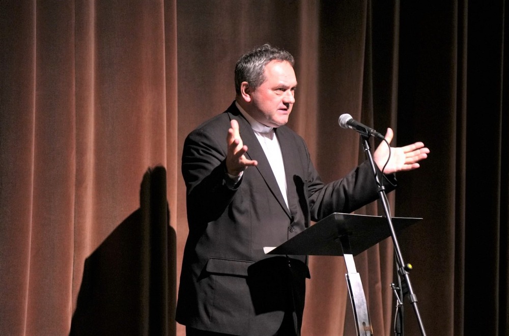 Felföldi László, a Pécsi Egyházmegye püspöke Lukács evangéliumából idézte a sziklára épített házról szóló hasonlatot (Lk 6, 45-49). A főpásztor személyes hangvételű köszöntőjében úgy fogalmazott, ahogy minden épület ereje a mélyben, az alapjában van, úgy az emberi életnek is az a lényege, hogy stabilan álljon. Láthatunk gyönyörűen építkező életutakat, karriereket, melyek nem működnek, mert nem volt alapja, összeomlott az első viharban, az első próbatételnél. Az alap ugyan nem látszik, de jól meg kell építeni. Az embernél a test, a lélek és a szellem egysége dönti el minden életállapotban, hogyan tudjuk azt megélni. Szakmát, hivatást, családot csak egészséges test, egészséges gondolkodás és egészséges lélek hármasa esetén lehet építeni. Ezt a meghatározó alapot a család mellett az óvoda és iskola adja.