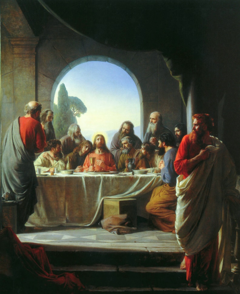 „Én ugyanis az Úrtól kaptam, amit közöltem is veletek: Urunk Jézus elárulásának éjszakáján fogta a kenyeret, hálát adott, megtörte, és így szólt: >Vegyétek és egyétek, ez az én testem értetek. Ezt tegyétek az én emlékezetemre.< Ugyanígy vacsora után fogta a kelyhet, és így szólt: >Ez a kehely az új szövetség az én véremben. Ezt tegyétek, valahányszor isztok belőle, az én emlékezetemre.< Valahányszor ugyanis e kenyeret eszitek, és e kehelyből isztok, az Úr halálát hirdetitek, amíg el nem jön.”
