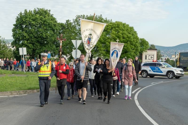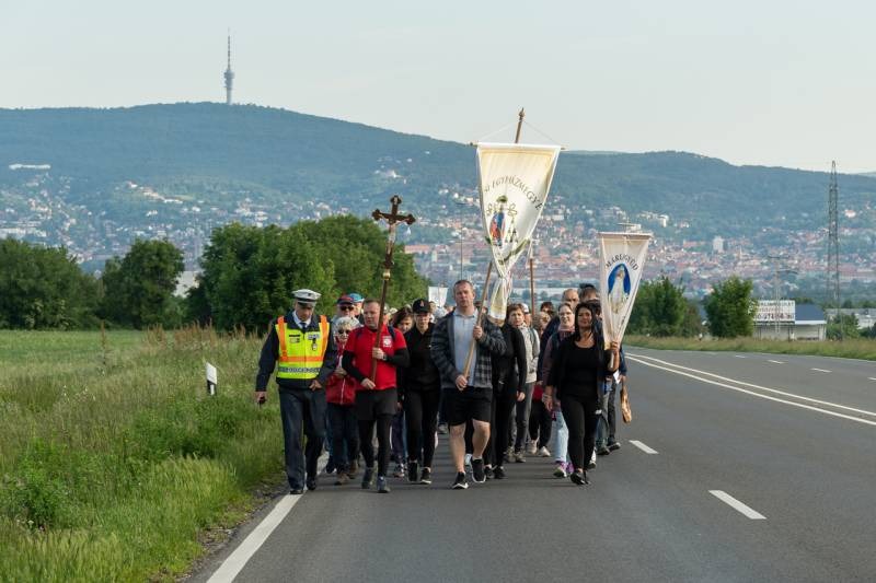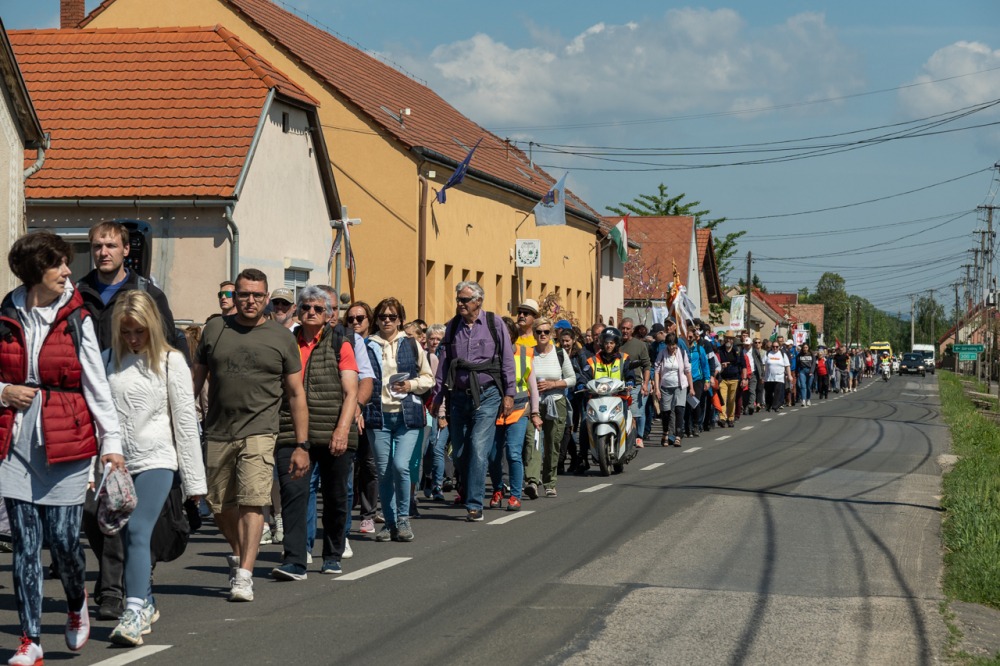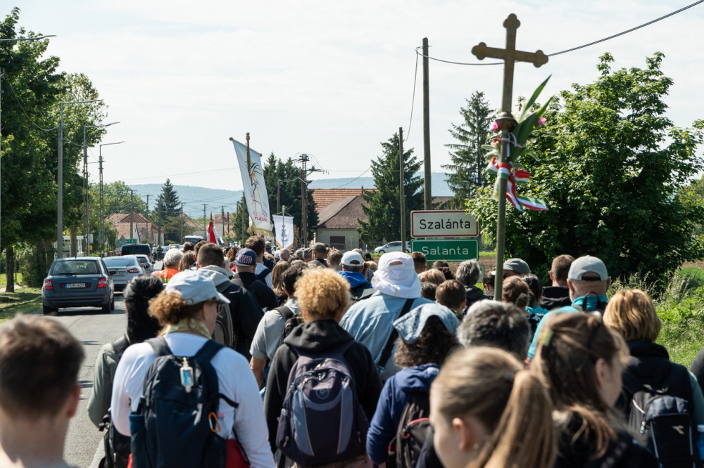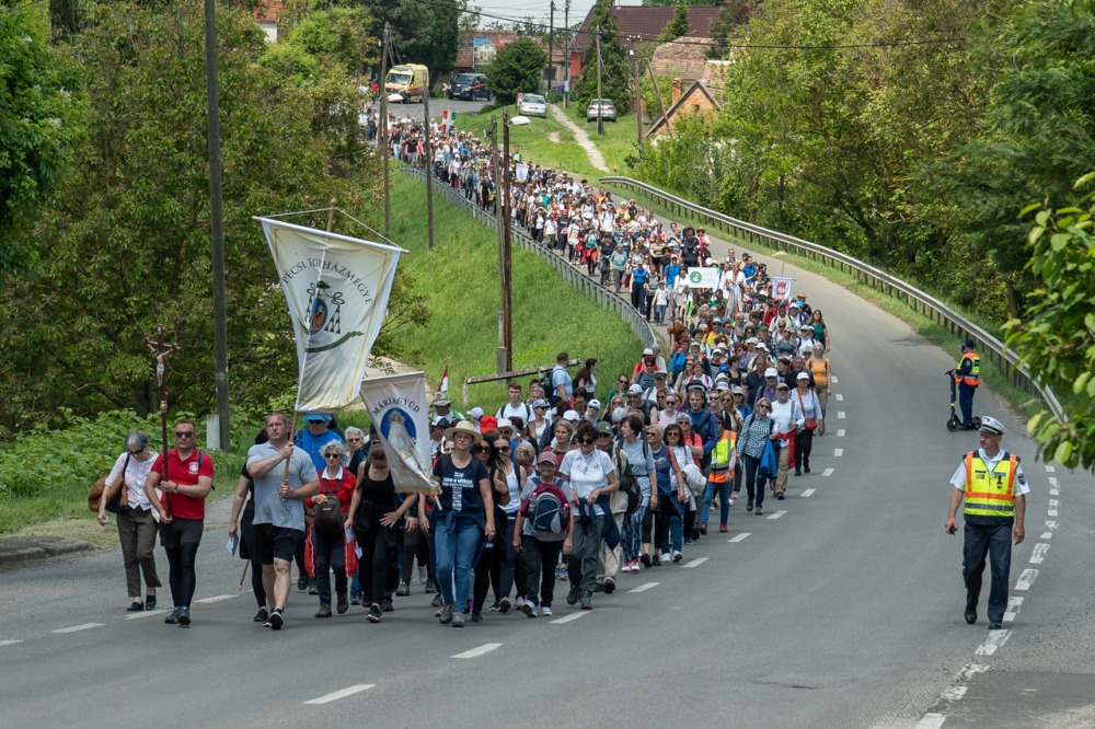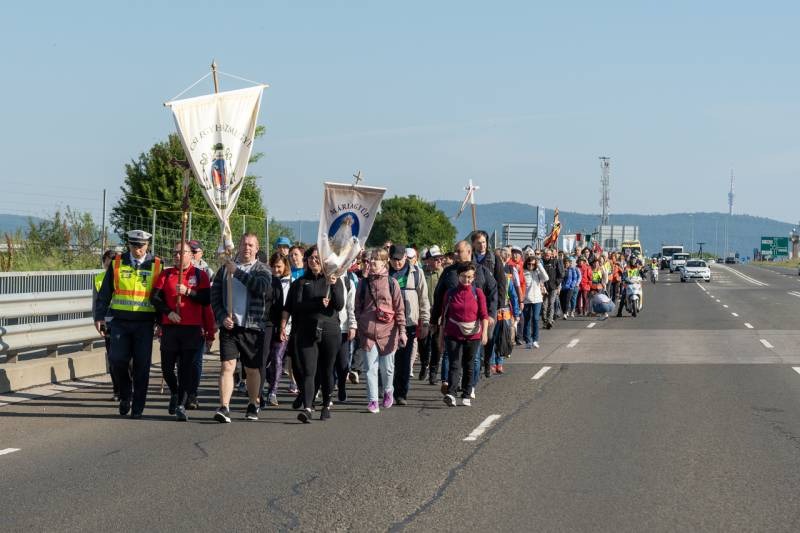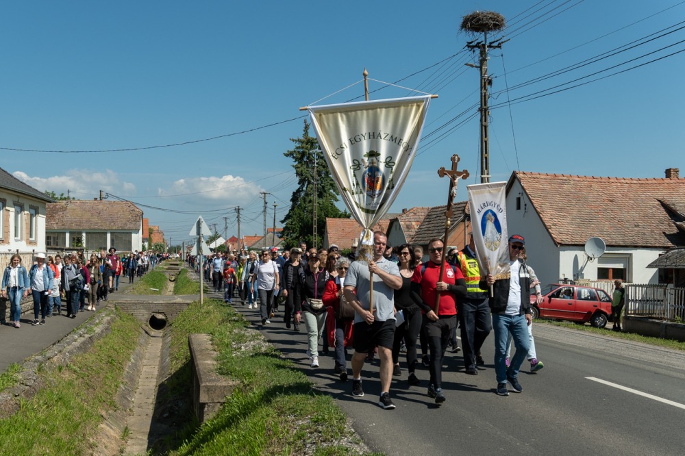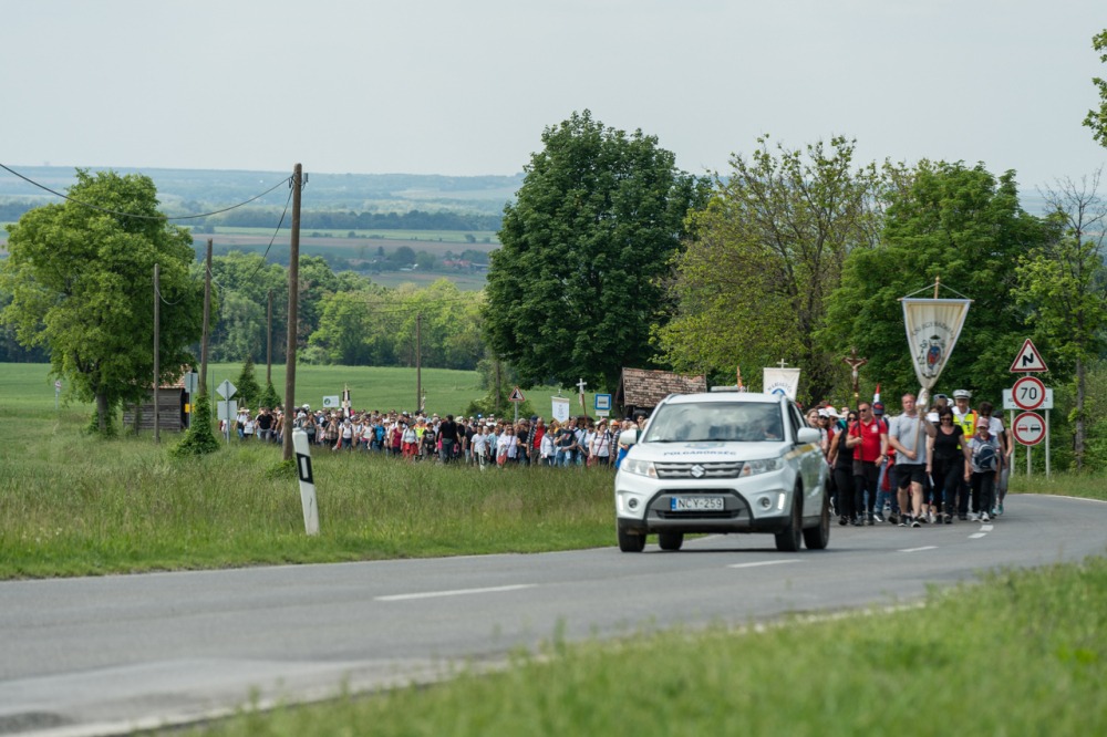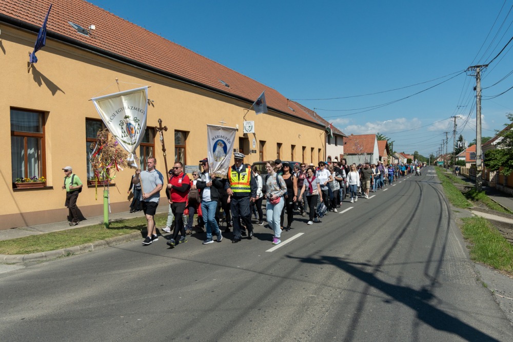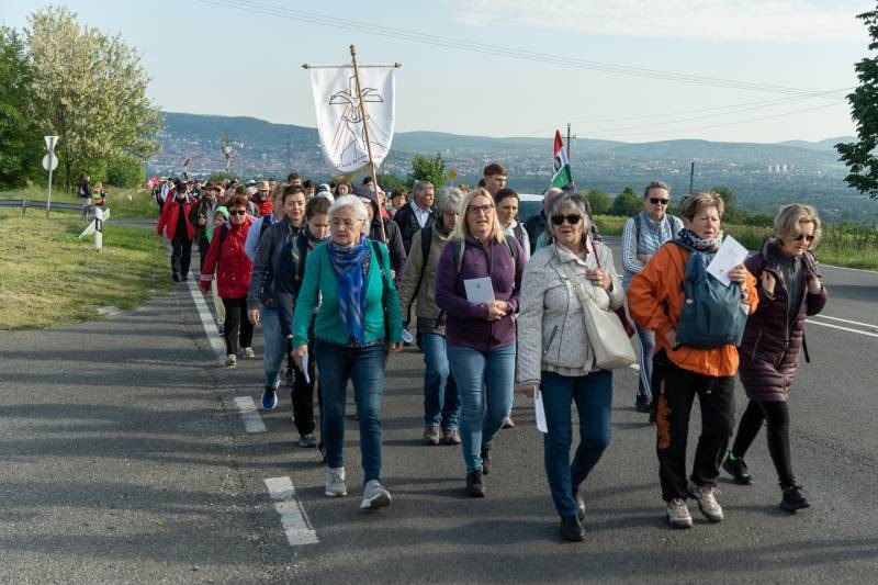 A feszület és a zászló mögött haladó zarándokok imádkozva, sokszor a gondolataik csendjében tették meg az olykor fárasztó és a testnek fájdalmat jelentő vagy épp örömteli és békét adó kilométereket. Majd hatóra úton lét után lassan feltűntek a máriagyűdi bazilika páros tornyai, melyek ezúttal is szelíd szeretettel köszöntötték a megfáradt zarándokokat.