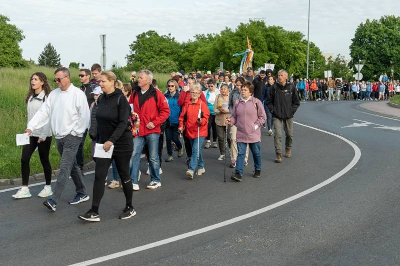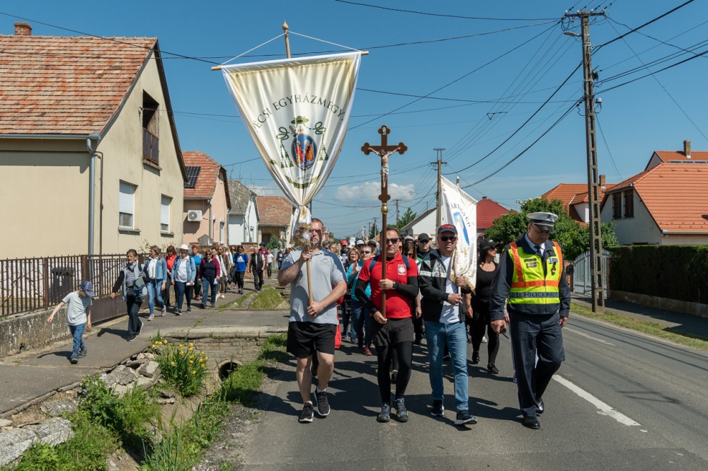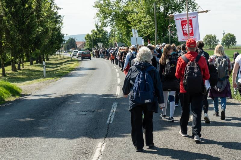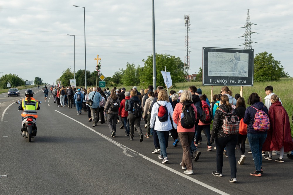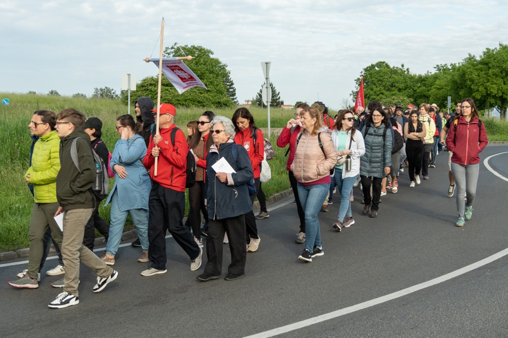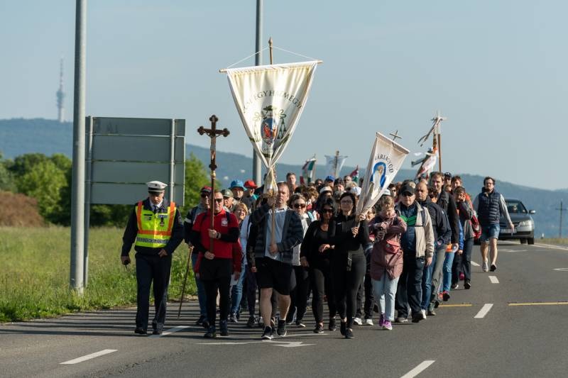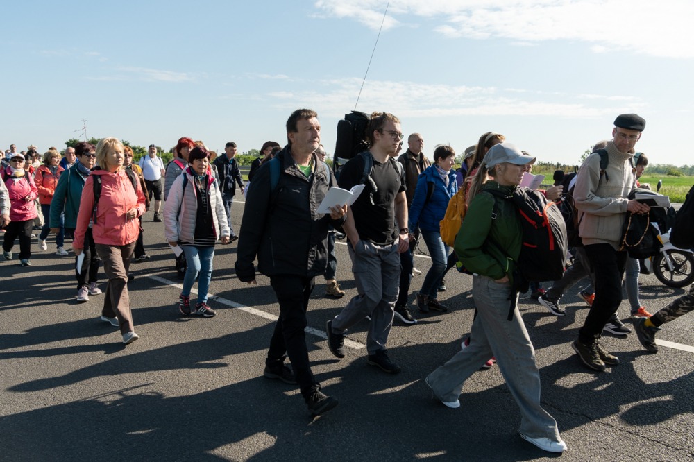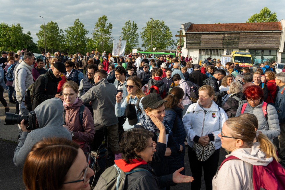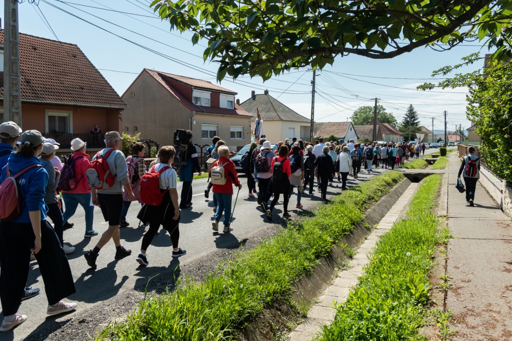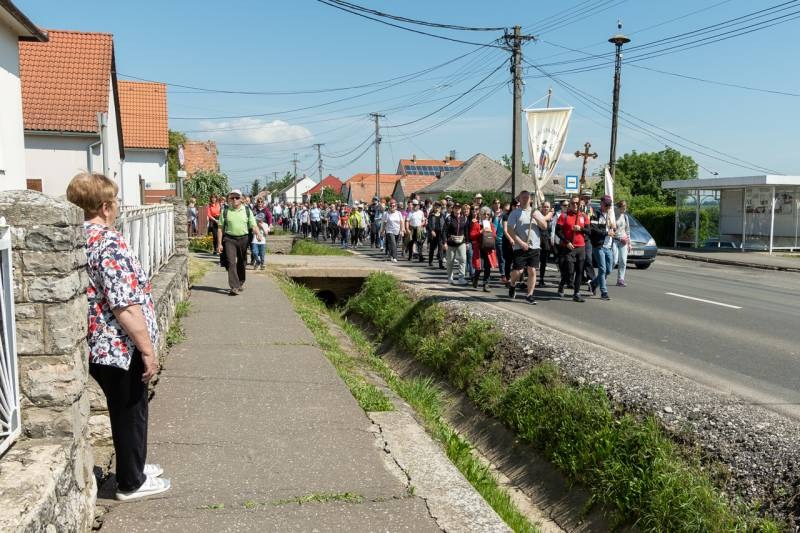 A feszület és a zászló mögött haladó zarándokok imádkozva, sokszor a gondolataik csendjében tették meg az olykor fárasztó és a testnek fájdalmat jelentő vagy épp örömteli és békét adó kilométereket. Majd hatóra úton lét után lassan feltűntek a máriagyűdi bazilika páros tornyai, melyek ezúttal is szelíd szeretettel köszöntötték a megfáradt zarándokokat.