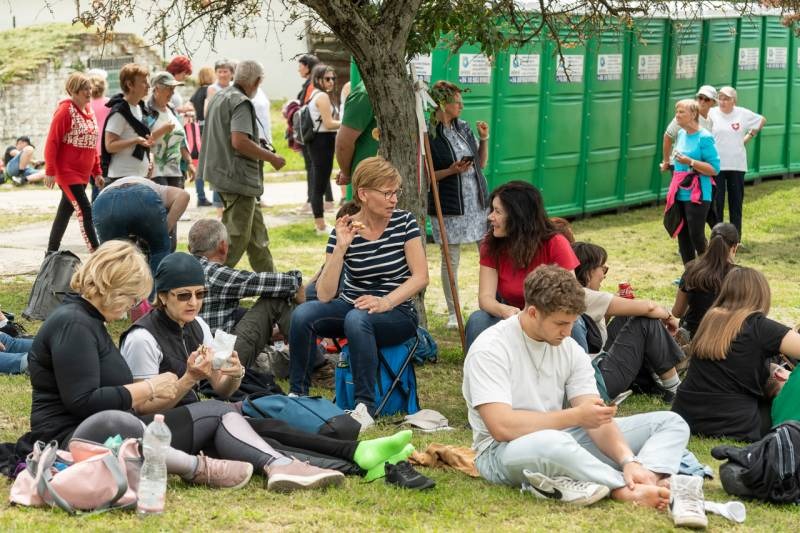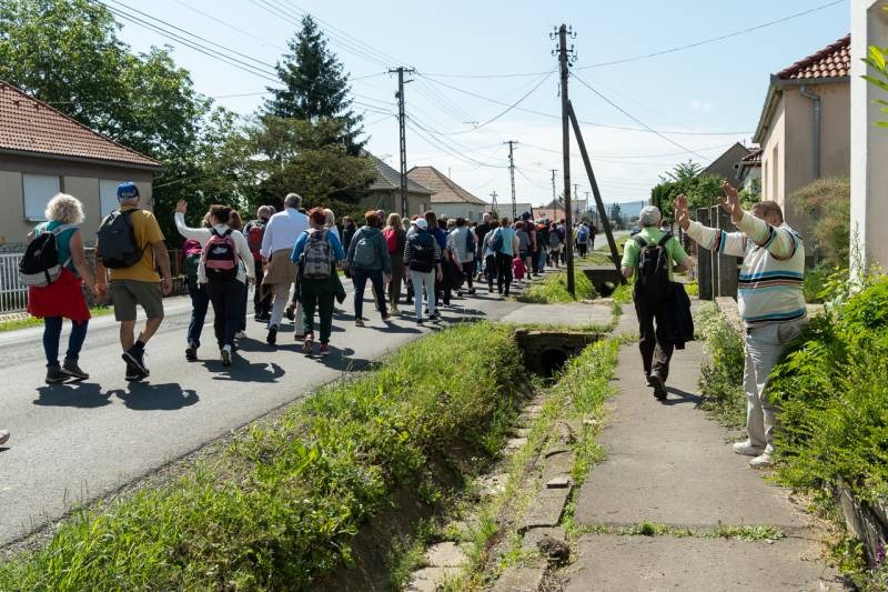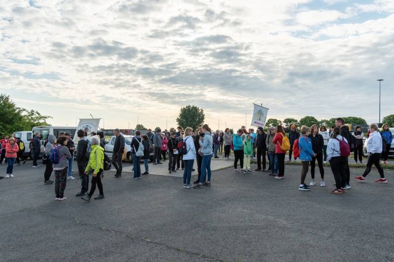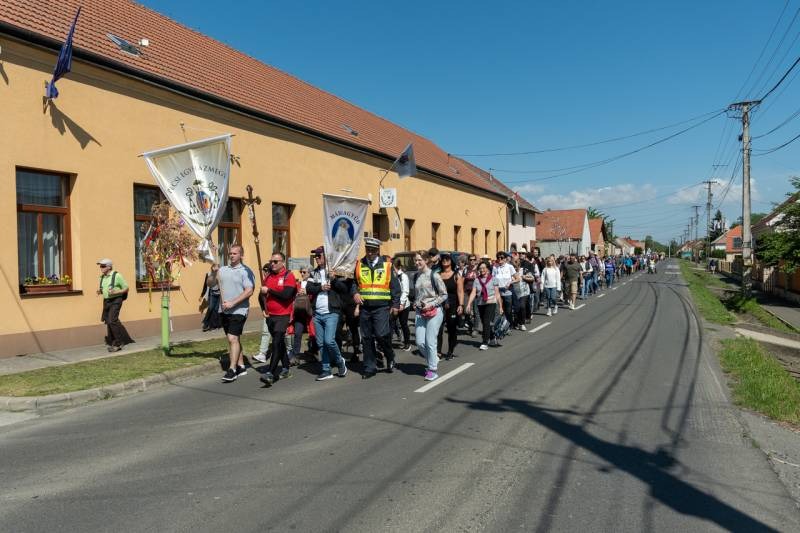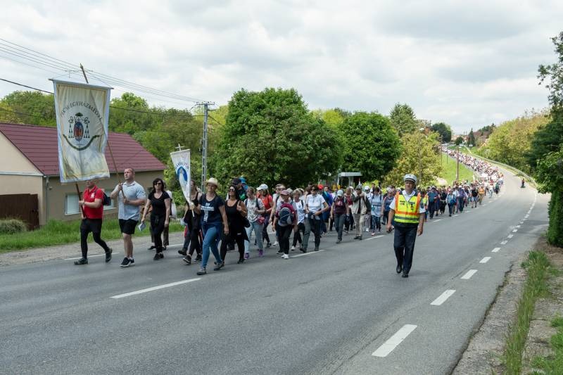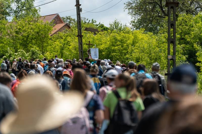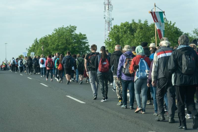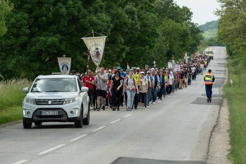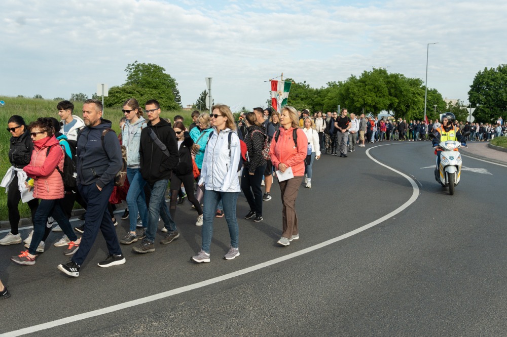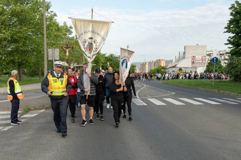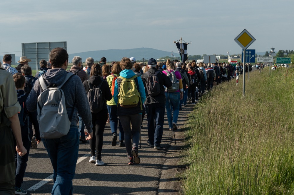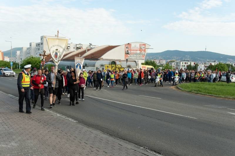 A feszület és a zászló mögött haladó zarándokok imádkozva, sokszor a gondolataik csendjében tették meg az olykor fárasztó és a testnek fájdalmat jelentő vagy épp örömteli és békét adó kilométereket. Majd hatóra úton lét után lassan feltűntek a máriagyűdi bazilika páros tornyai, melyek ezúttal is szelíd szeretettel köszöntötték a megfáradt zarándokokat.