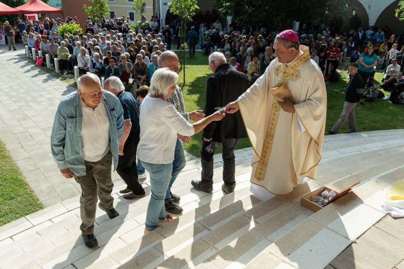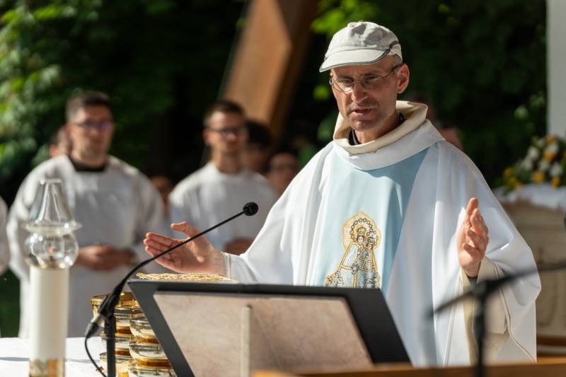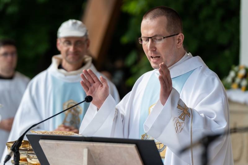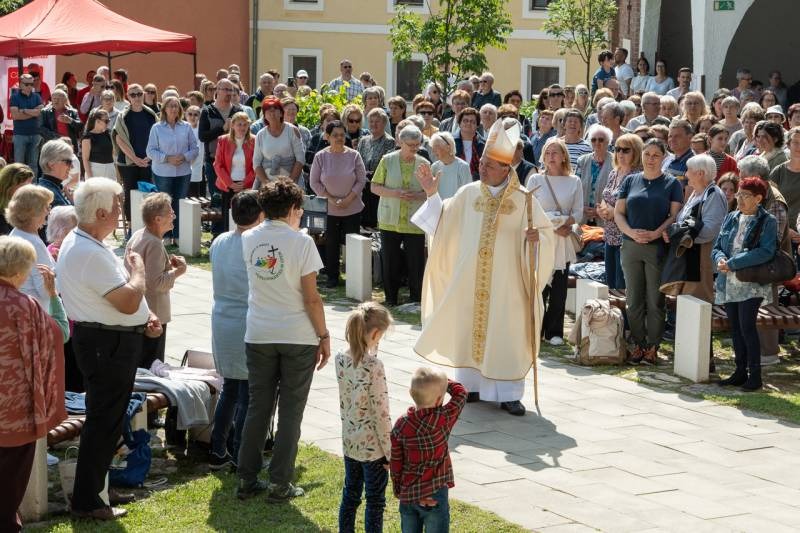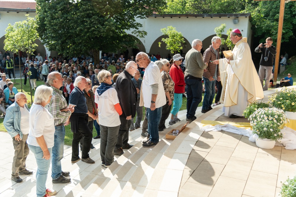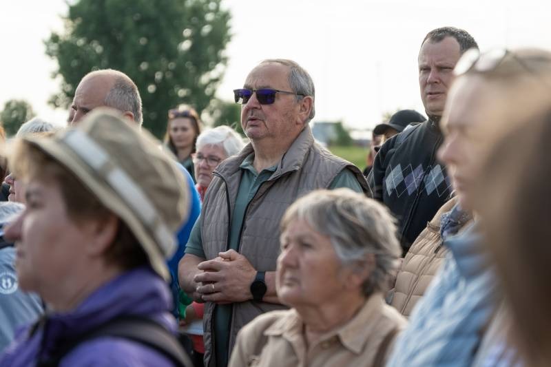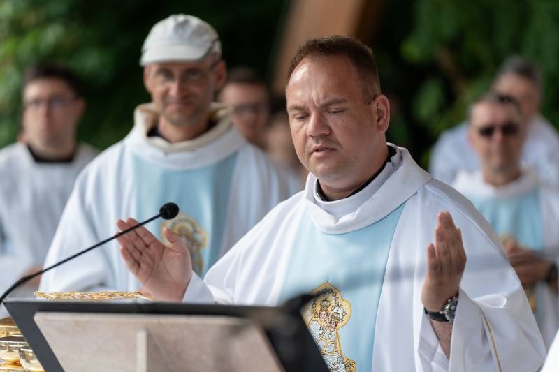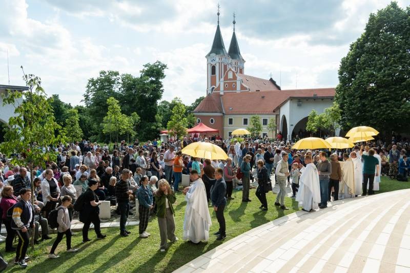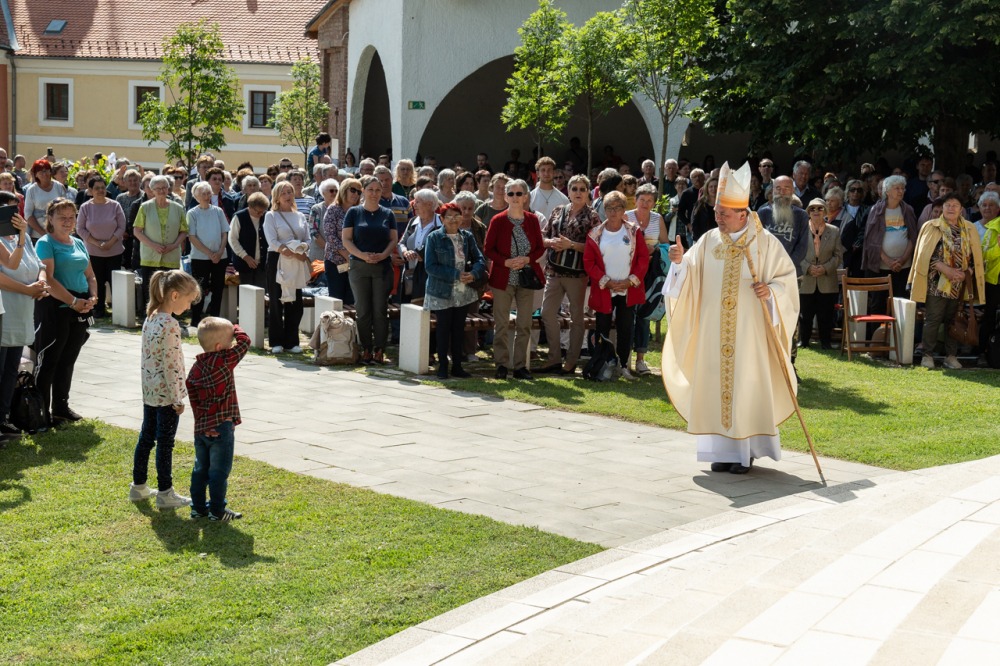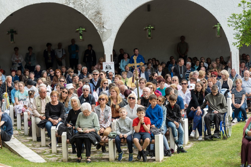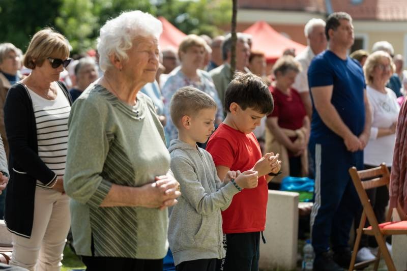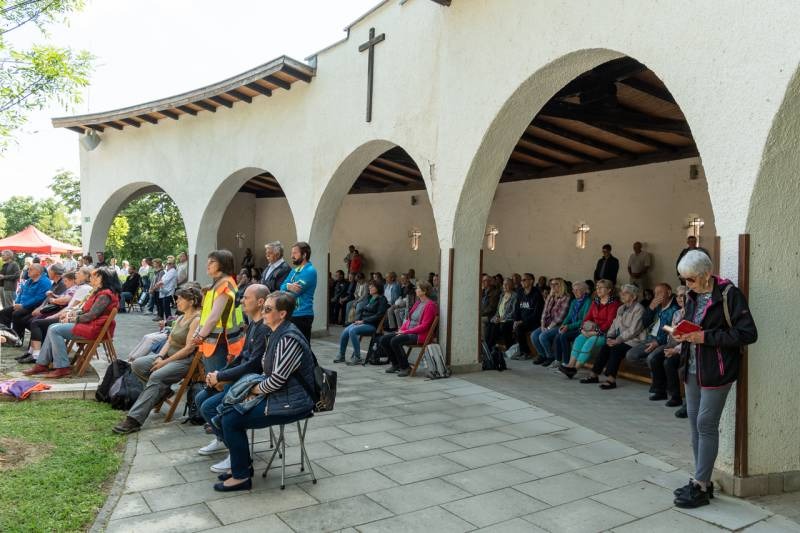 A kegyhely szabadtéri oltáránál bemutatott szentmise elején Felföldi László megyéspüspök köszönetet mondott és kifejezte háláját a zarándoklat találkozásaiért és a személyes beszélgetések lehetőségeiért, majd a szívekben hordozott imaszándékok közül emelt ki néhányat.