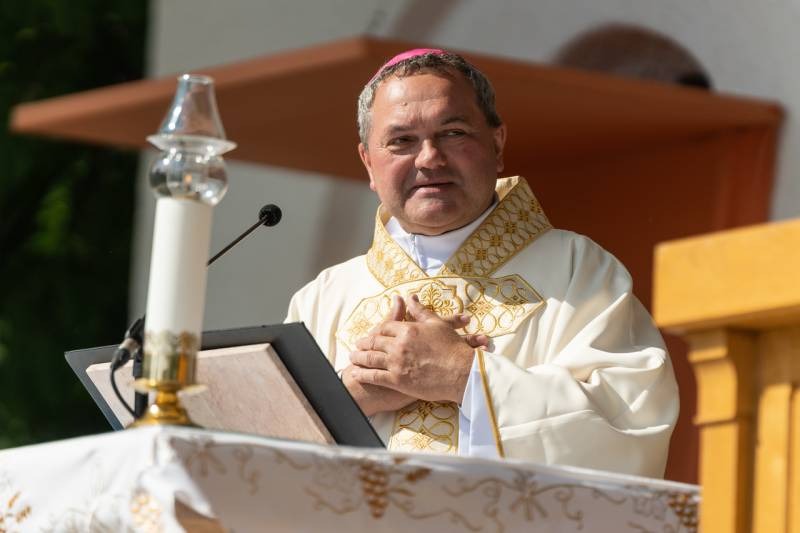 Elsőként a május 8-án megválasztott XIV. Leó pápáért mondott köszönetet. Mint fogalmazott, Szentatyánk különleges karizmák hordozója, akit Isten ennek a szolgálatnak a keresztjére készített fel az életútjában. Láthattuk azokat a pillanatokat, amikor megérezte ennek a súlyát, erejét és a felelősségét, de Istenbe vetett és Istentől kapott hitét is, mellyel a teremtő mellette áll a szolgálatban – fogalmazott a püspök.