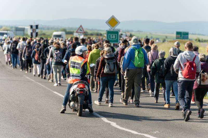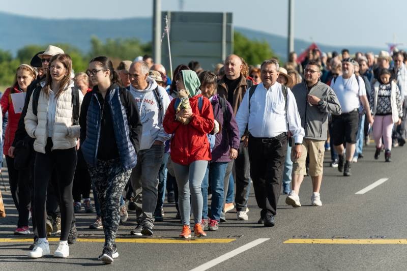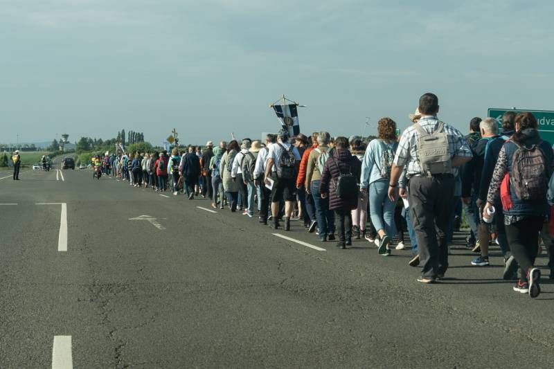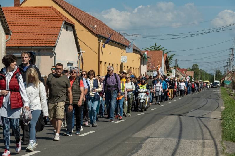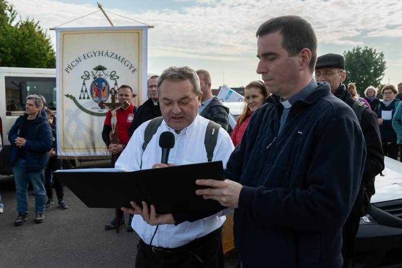 A gyalogos zarándokok reggel hét órakor gyülekeztek Pécs határában, majd indultak el az 58-as úton a Tenkes-hegy Fehér Asszonyához – ahogy a helybéliek nevezik a Szűzanyát -, hogy elébe vigyék szomorúságukat, fájdalmukat vagy épp hitüket, reményüket és hálájukat, megköszönve Mária közbenjárását érettük.