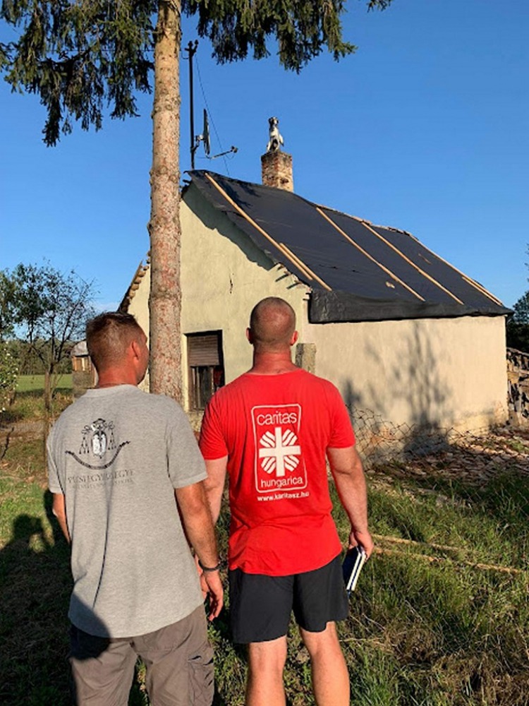 A Pécsi Egyházmegyei Katolikus Karitász munkatársai a vihar utáni nap már reggel a helyszínre érkeztek, hogy a Katasztrófavédelem irányítása alatt segítsenek a mentésben résztvevőknek. Gyorssegélyként konzerv élelmiszert, pékárut, zöldséget, gyümölcsöt, tányérokat, poharakat, evőeszközöket, fertőtlenítő szereket, darázsirtót szállítottunk a területre, továbbá frissítőpont működtetésével segítettük a Katasztrófavédelem önkéntes és hivatásos állományát. A szakemberek feladata a megsérült és életveszélyes tetőcserepek eltávolítása és a házak fóliával történő ideiglenes lefedése volt, ami a következő időszakban várható eső ellen nyújthat védelmet. A katasztrófa utáni napon már elindult az adományok felajánlása is a településekre, ezek főleg tetőcserepek, faanyagok, fóliák, melyek elosztásának koordinálásában szintén tudtunk segíteni a helyi önkormányzatoknak.