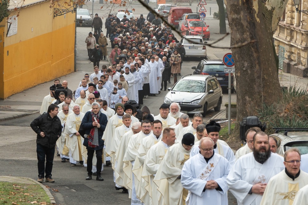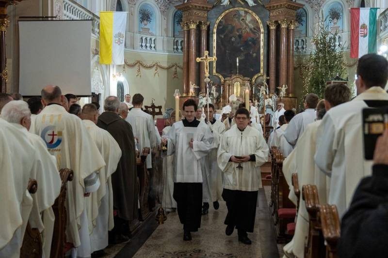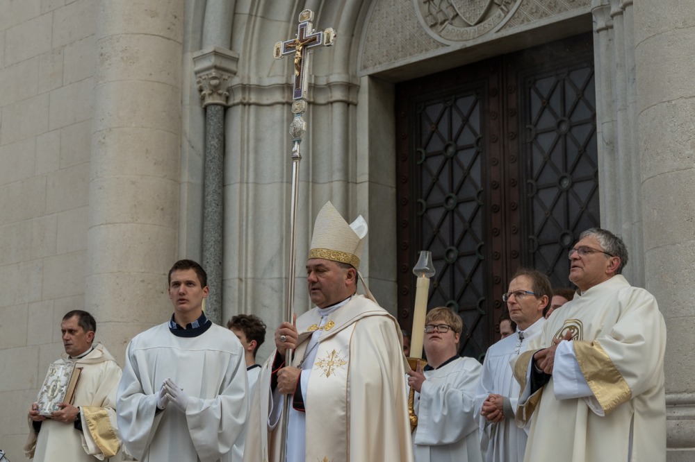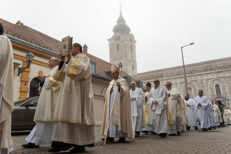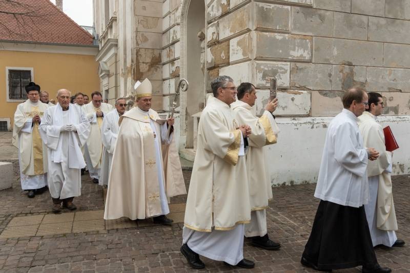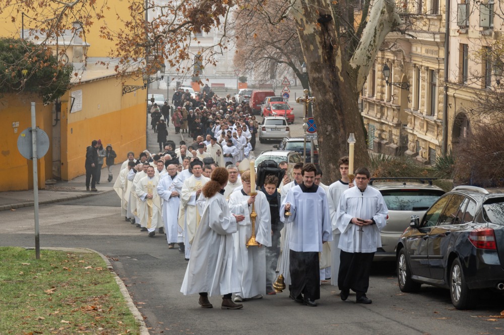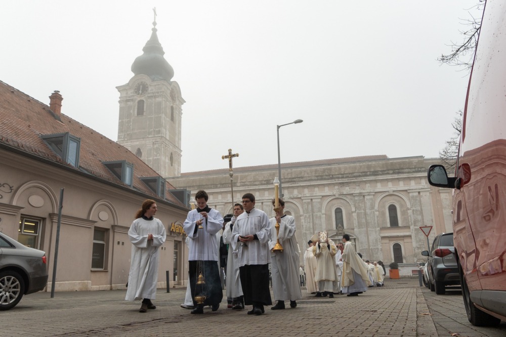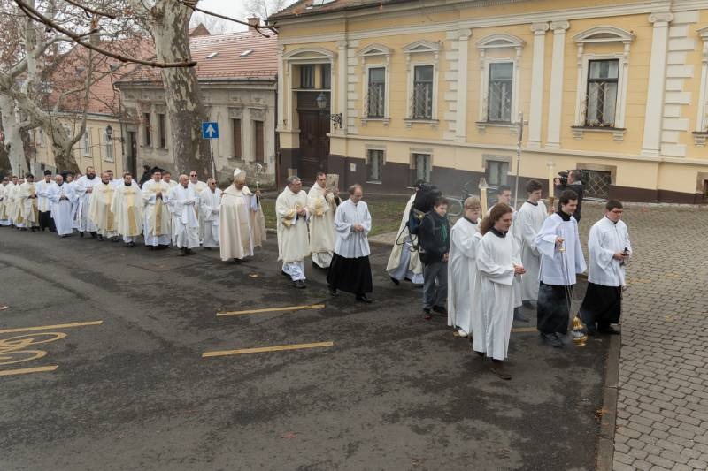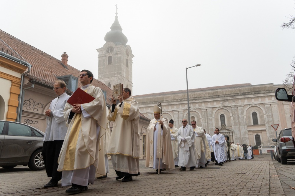Az ünnepi a szertartás a pécsi Szent Ferenc-templomban kezdődött, ahova a püspöki palotából vonult át a papság és a teljes asszisztencia, aztán a hívekkel kiegészülve körmenetben érkeztek a a pécsi székesegyházba, ahol püspöki szentmisével folytatódott az egyházmegye szép ünnepe.