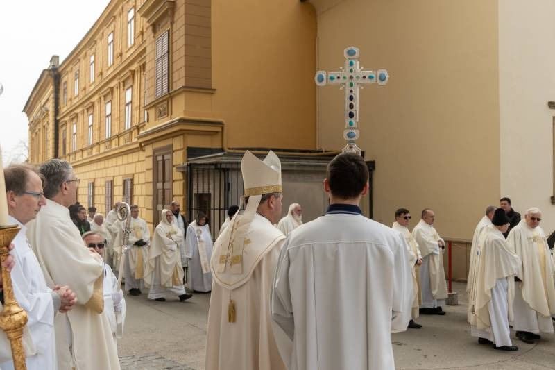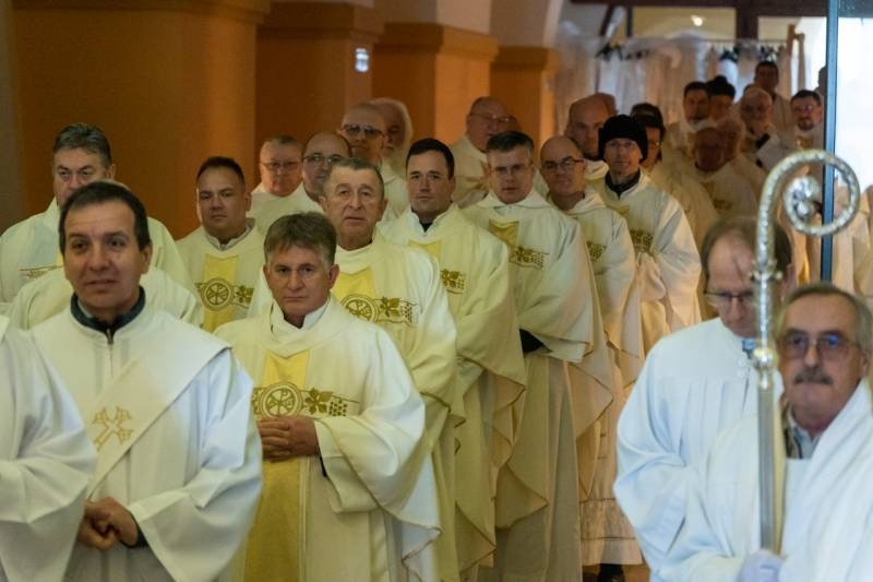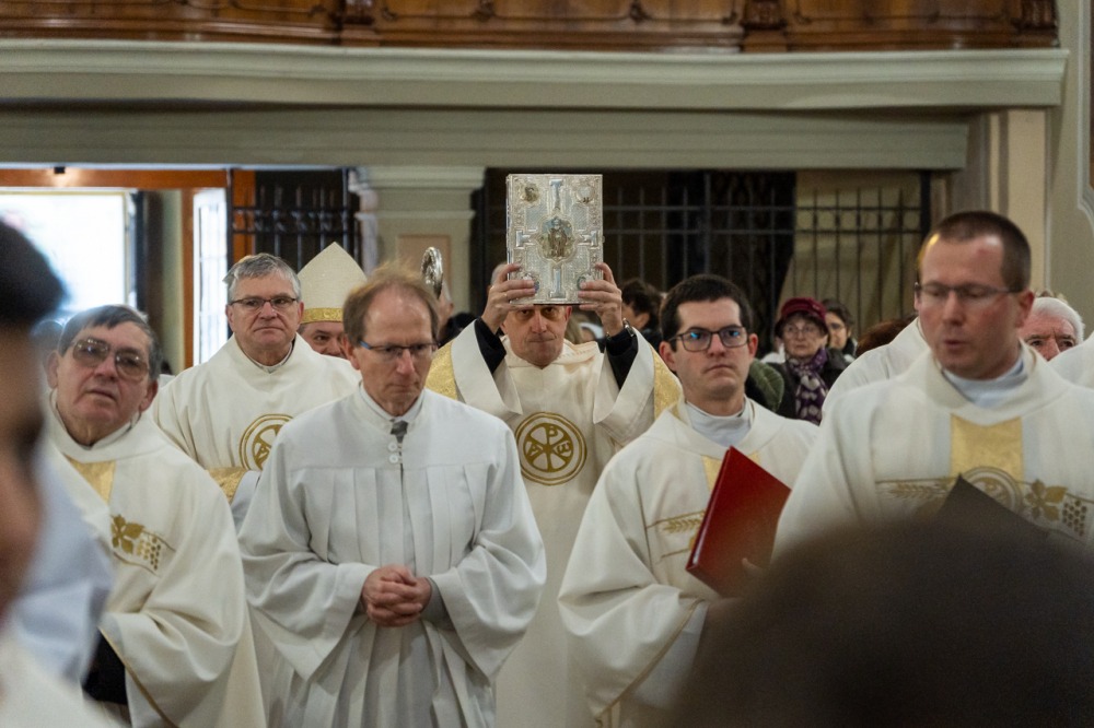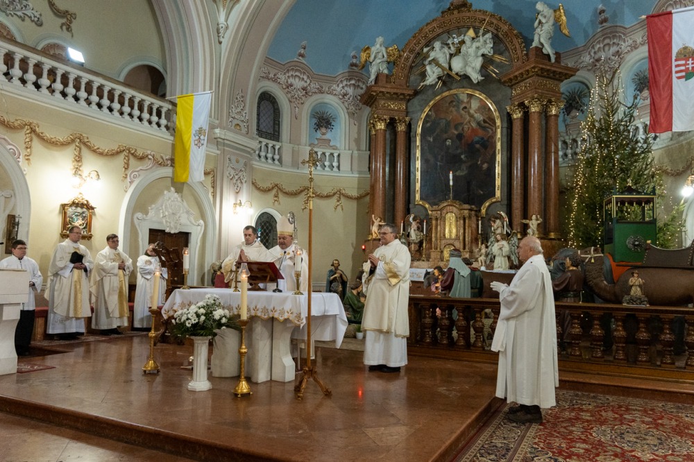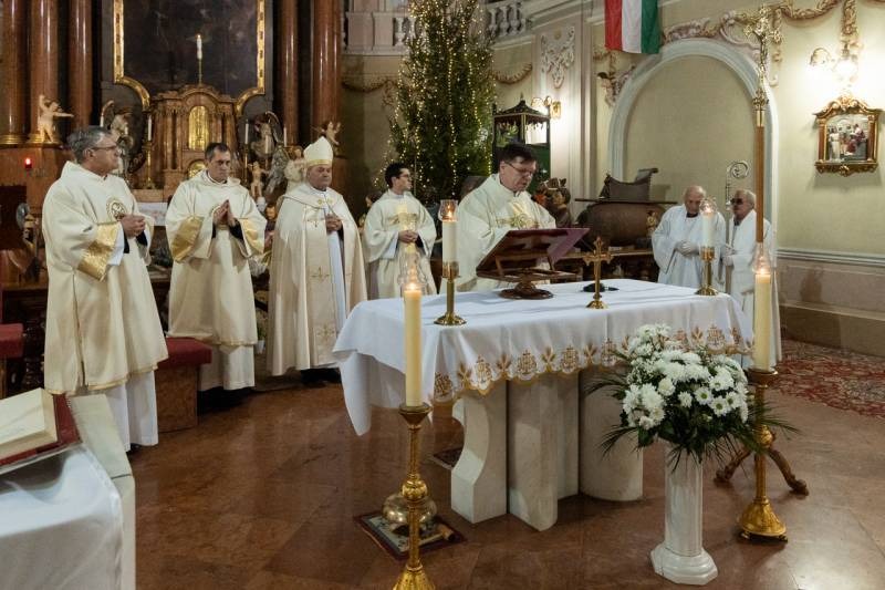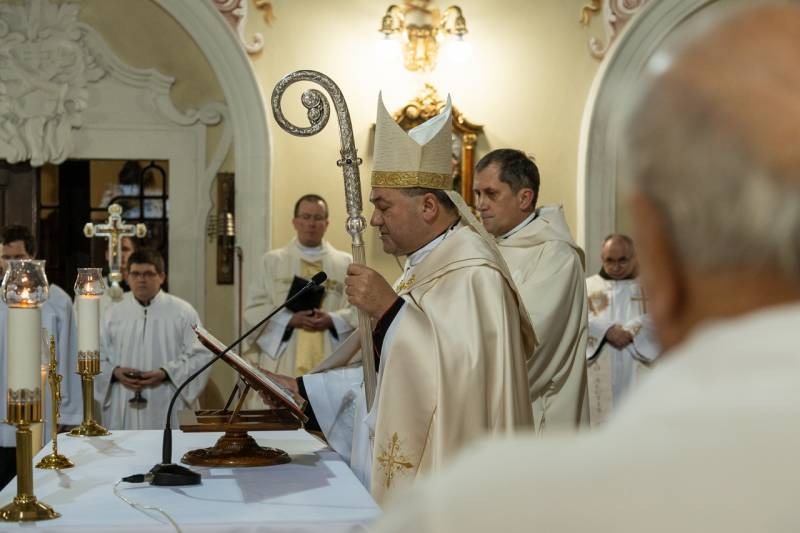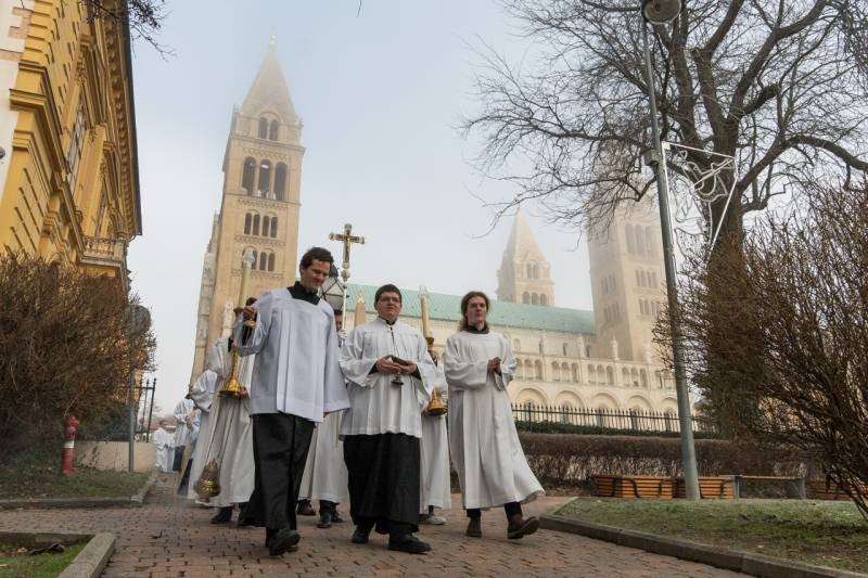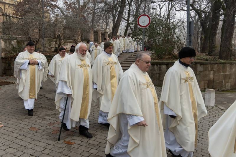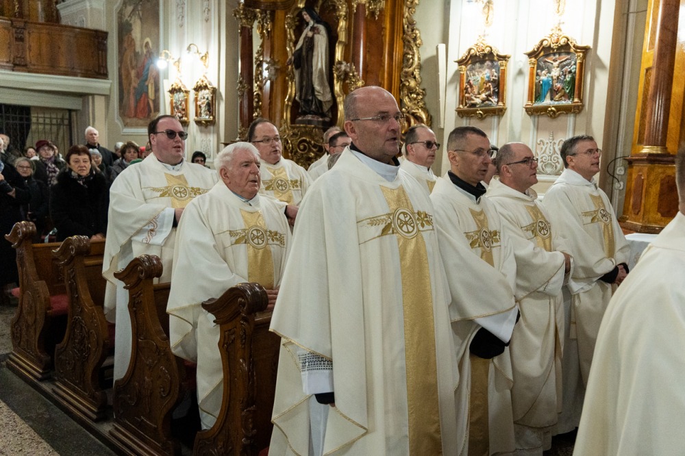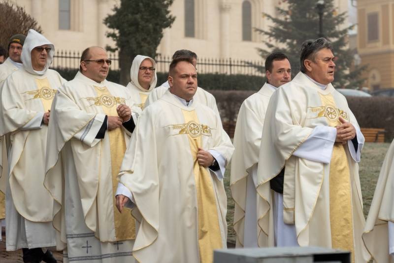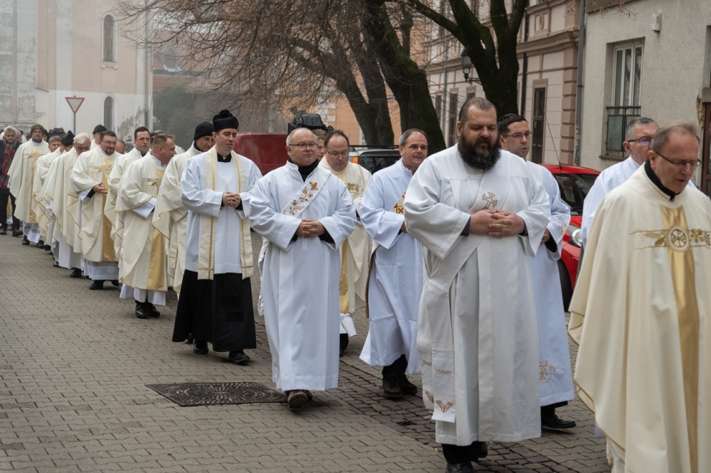 Az ünnepi a szertartás a pécsi Szent Ferenc-templomban kezdődött, ahova a püspöki palotából vonult át a papság és a teljes asszisztencia, aztán a hívekkel kiegészülve körmenetben érkeztek a a pécsi székesegyházba, ahol püspöki szentmisével folytatódott az egyházmegye szép ünnepe.