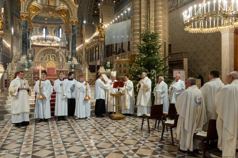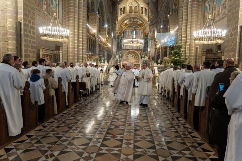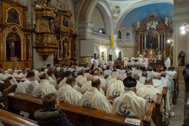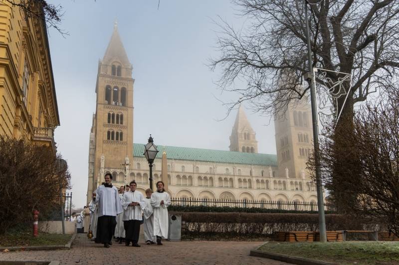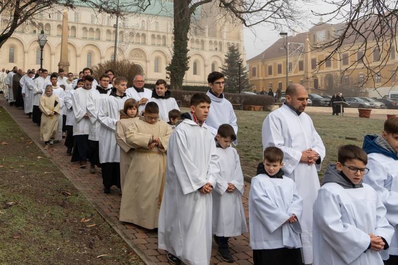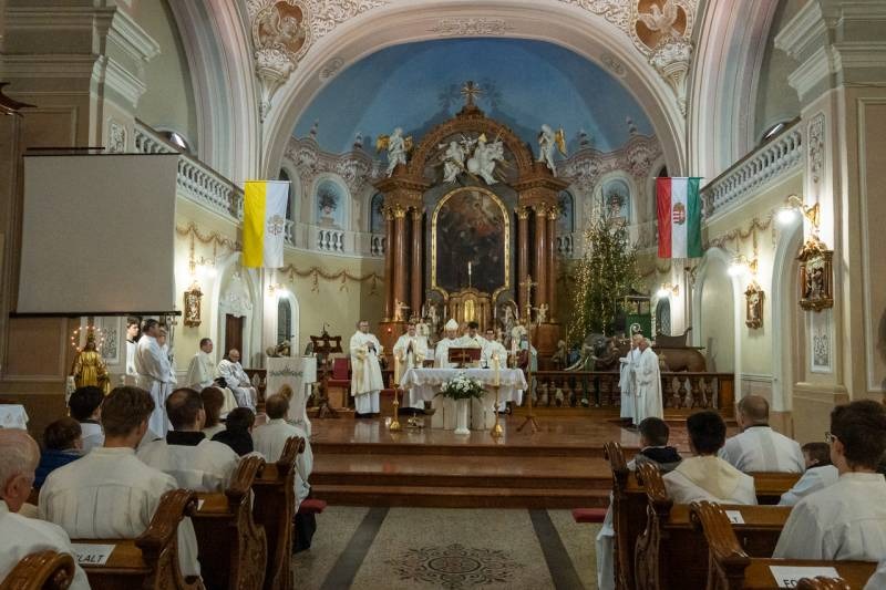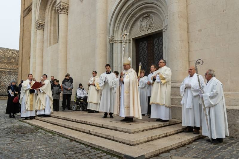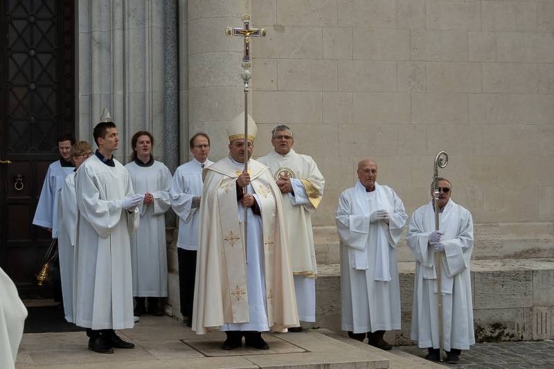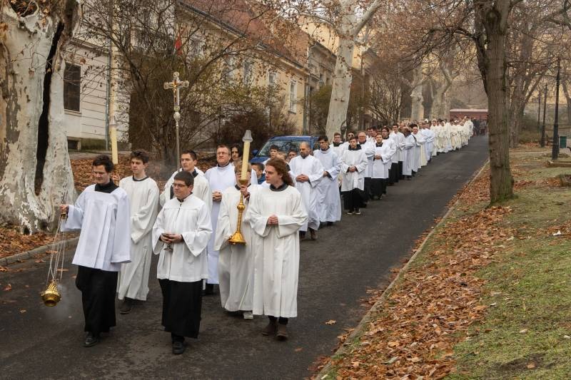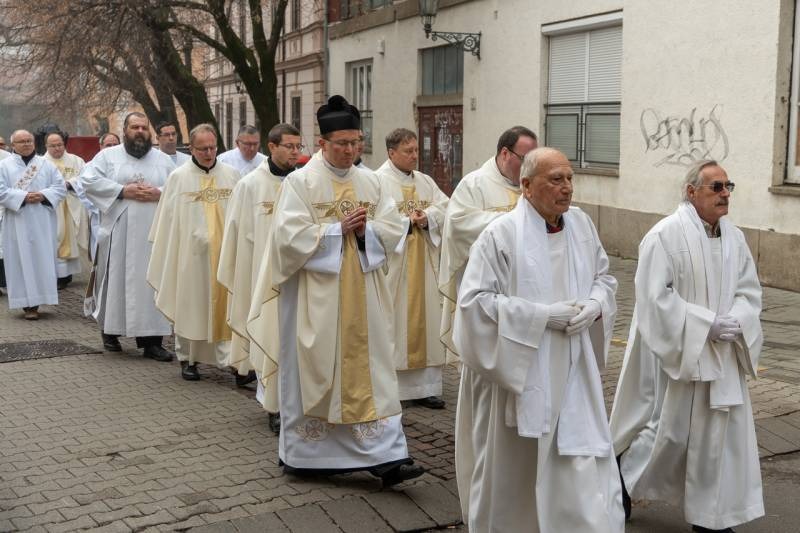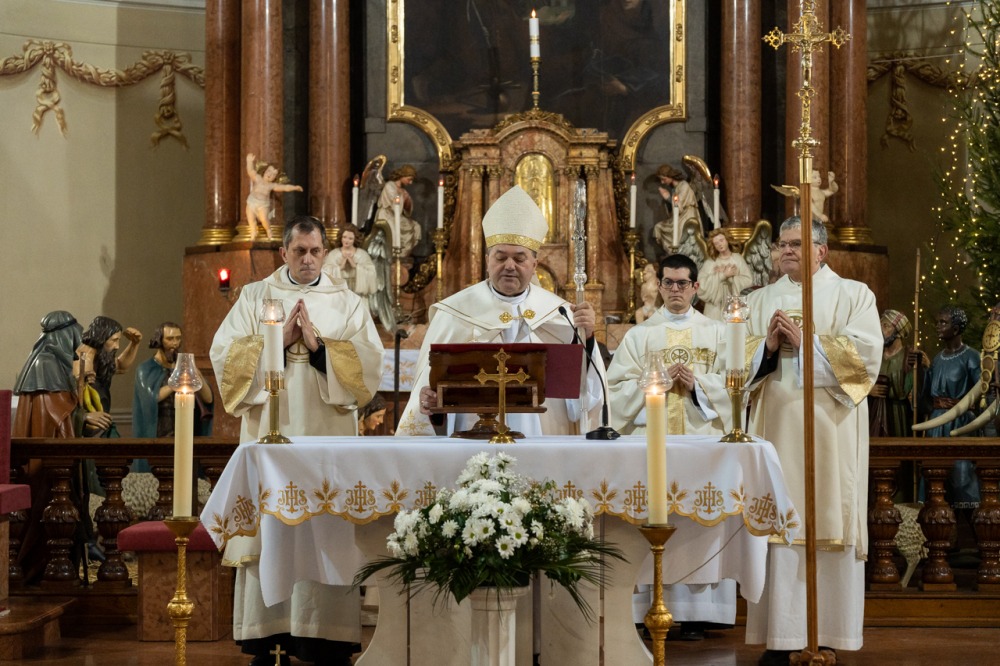 Az ünnepi a szertartás a pécsi Szent Ferenc-templomban kezdődött, ahova a püspöki palotából vonult át a papság és a teljes asszisztencia, aztán a hívekkel kiegészülve körmenetben érkeztek a a pécsi székesegyházba, ahol püspöki szentmisével folytatódott az egyházmegye szép ünnepe.