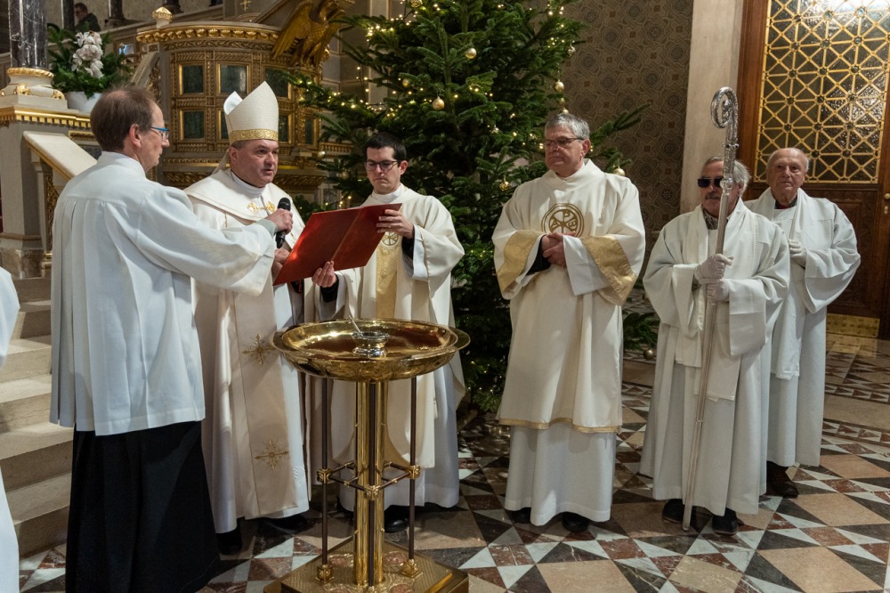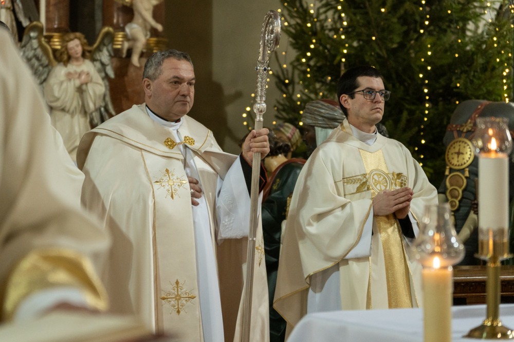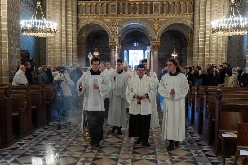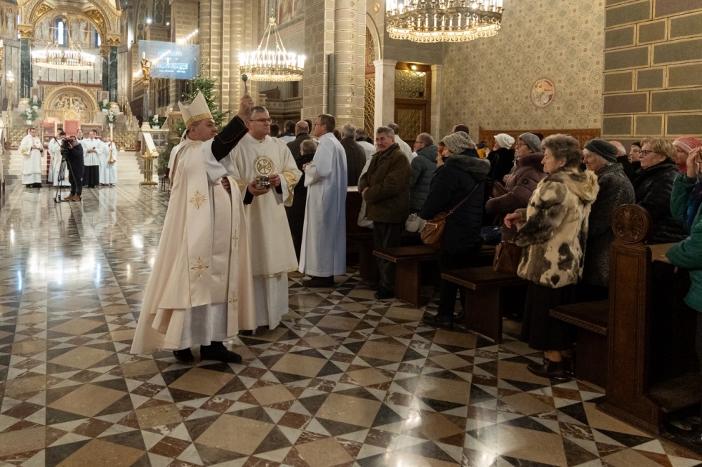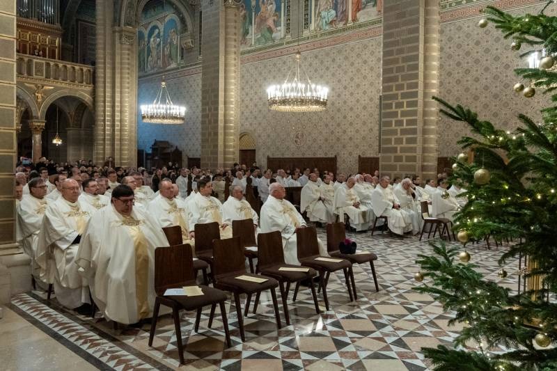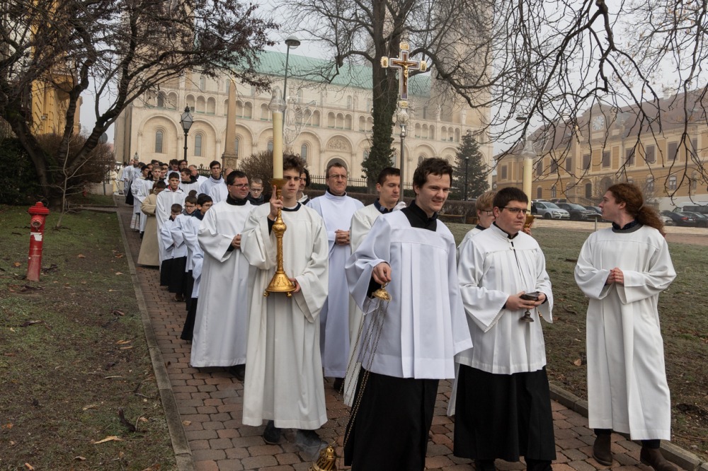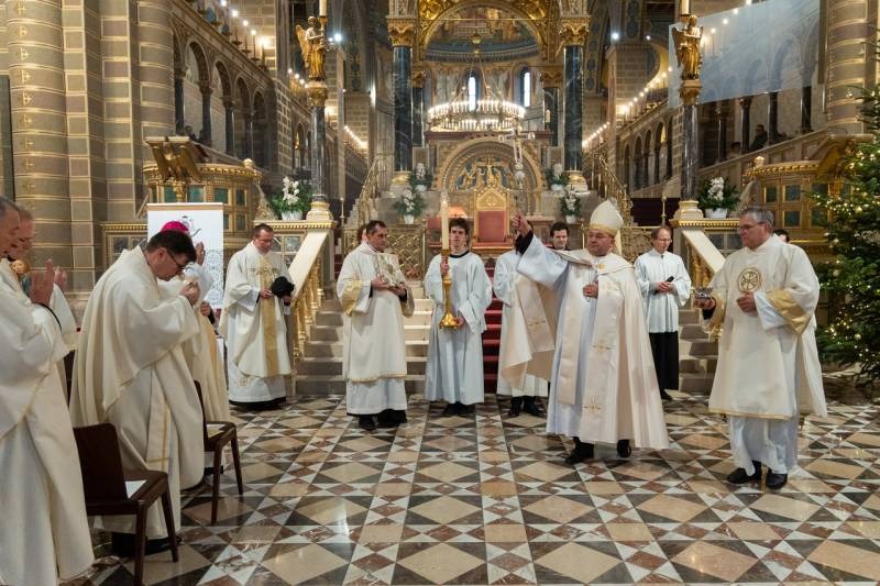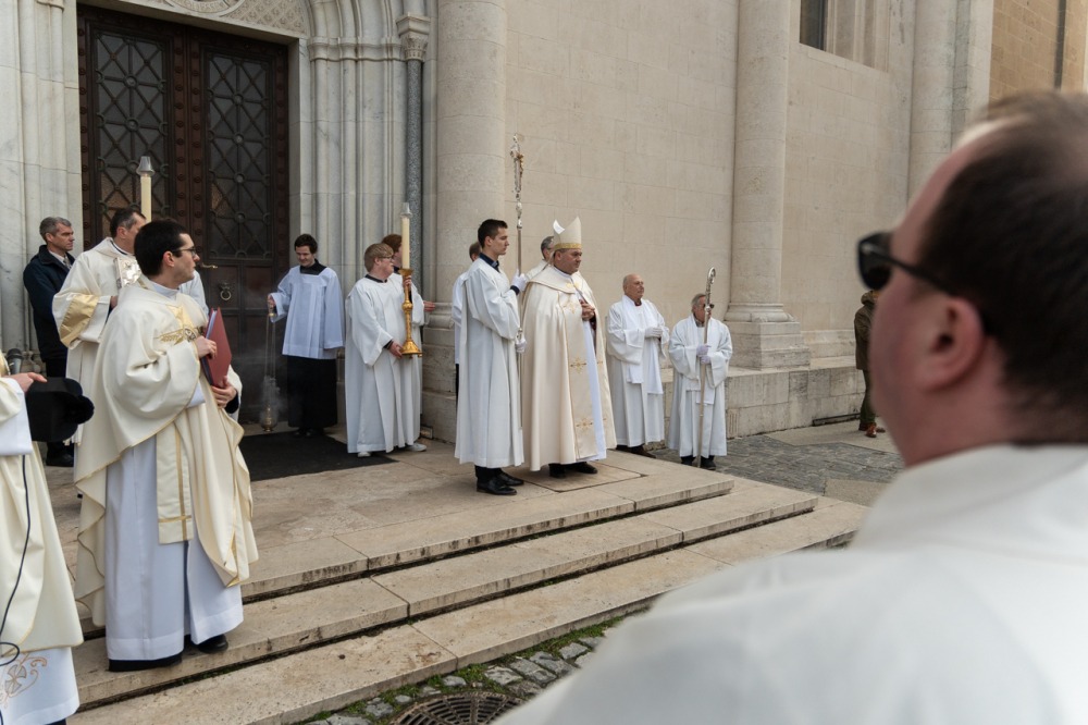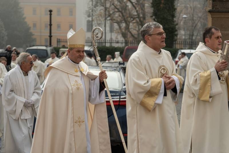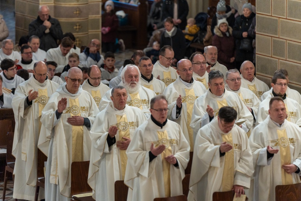 Az ünnepi a szertartás a pécsi Szent Ferenc-templomban kezdődött, ahova a püspöki palotából vonult át a papság és a teljes asszisztencia, aztán a hívekkel kiegészülve körmenetben érkeztek a a pécsi székesegyházba, ahol püspöki szentmisével folytatódott az egyházmegye szép ünnepe.