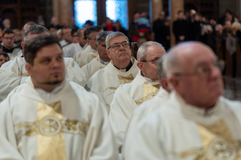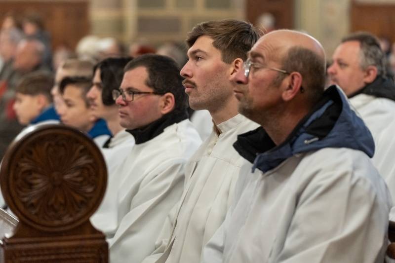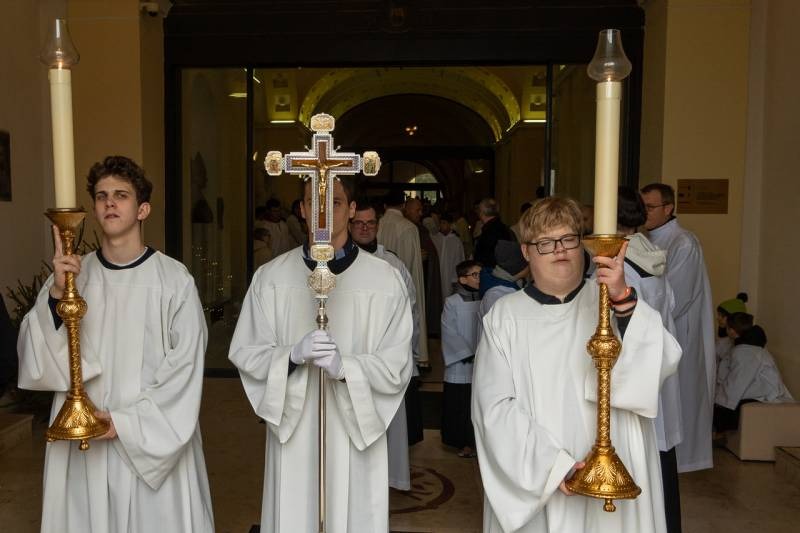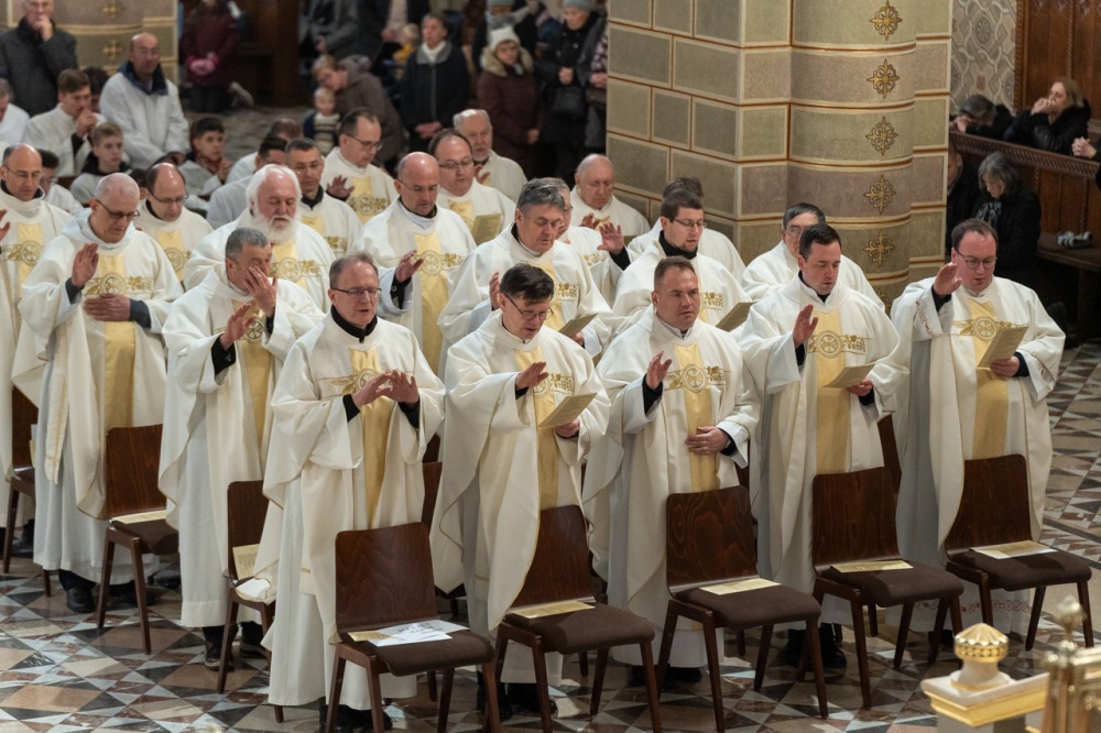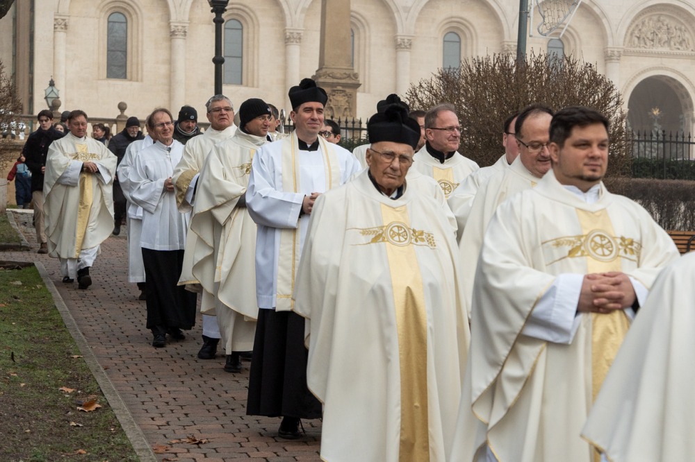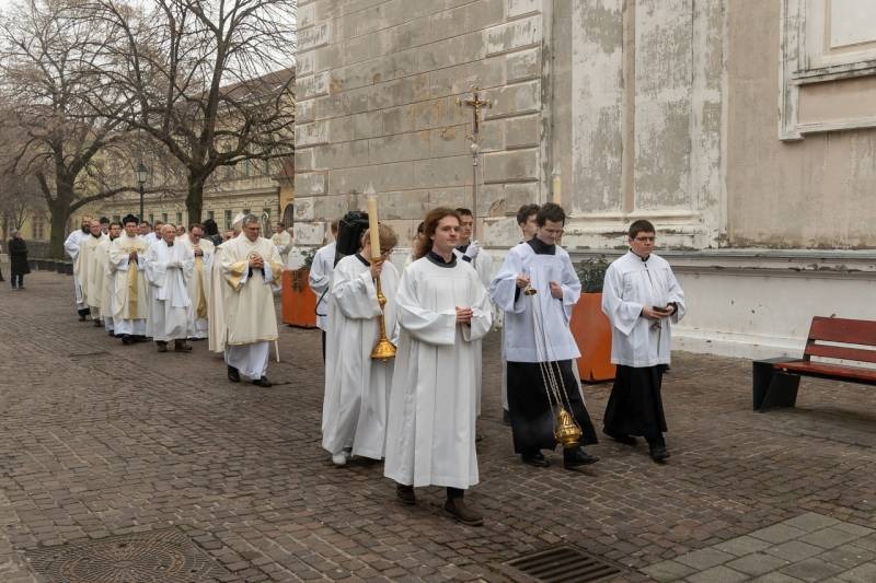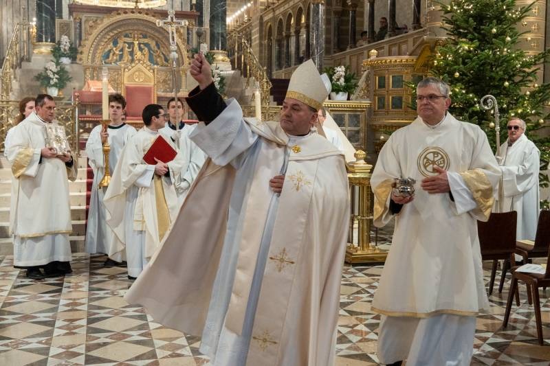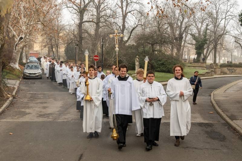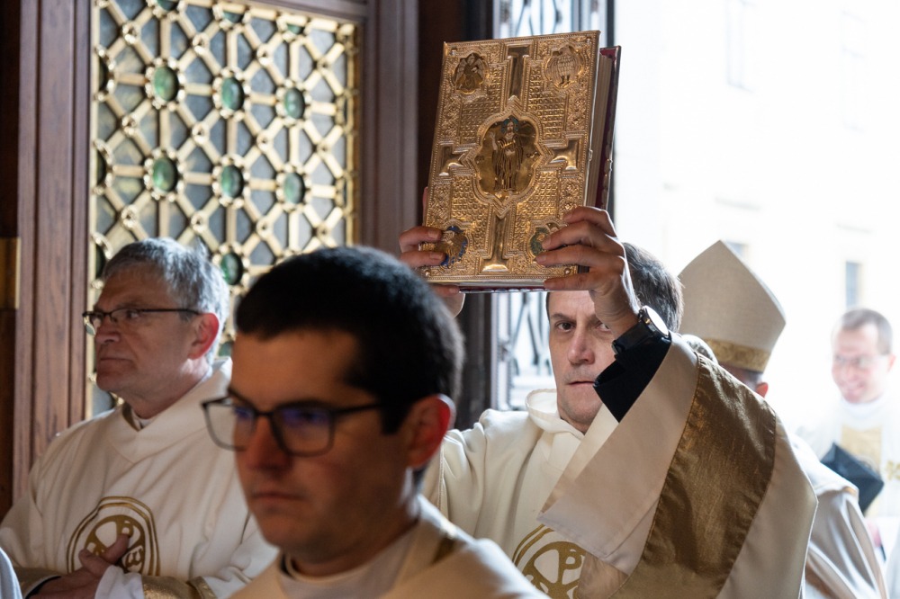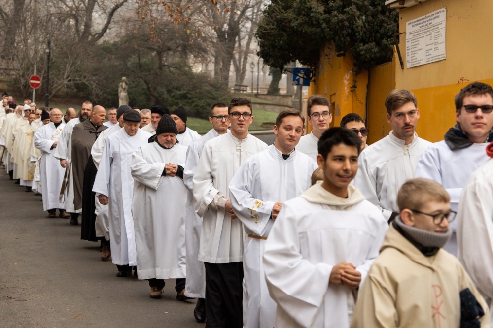 Az ünnepi a szertartás a pécsi Szent Ferenc-templomban kezdődött, ahova a püspöki palotából vonult át a papság és a teljes asszisztencia, aztán a hívekkel kiegészülve körmenetben érkeztek a a pécsi székesegyházba, ahol püspöki szentmisével folytatódott az egyházmegye szép ünnepe.