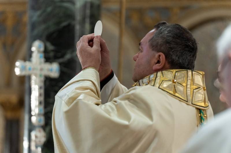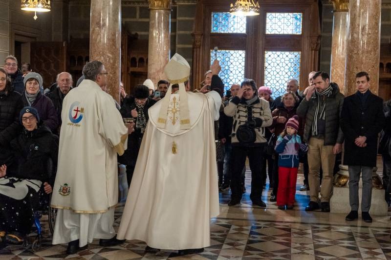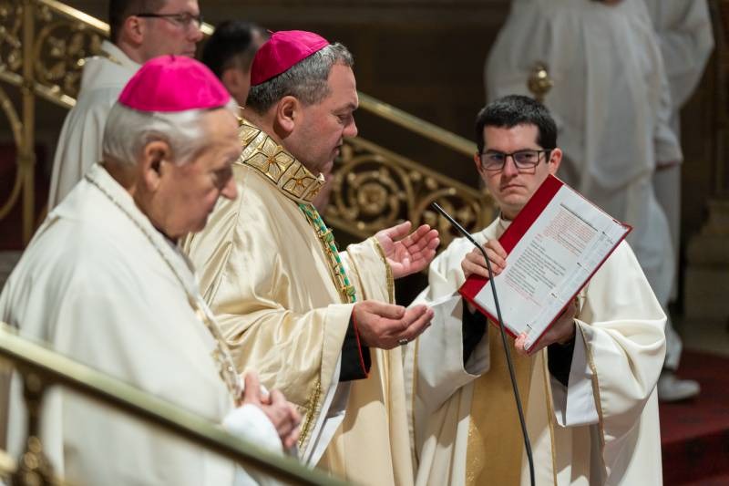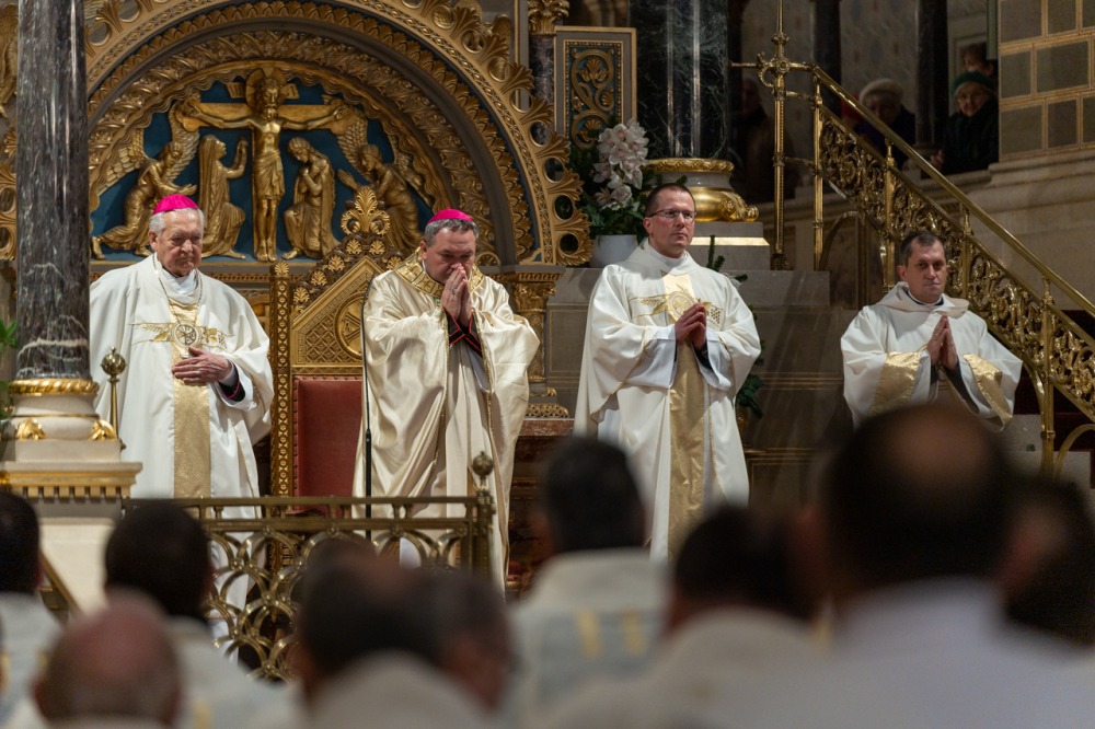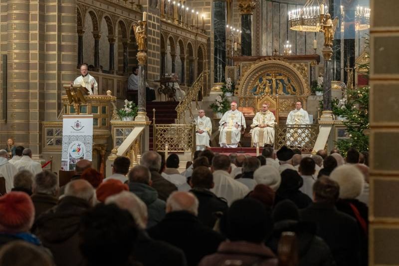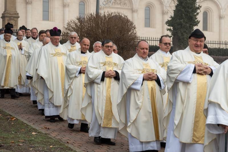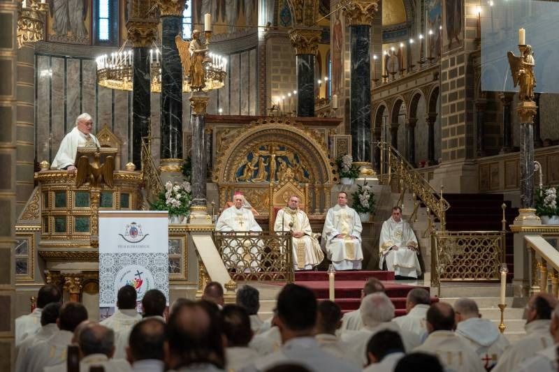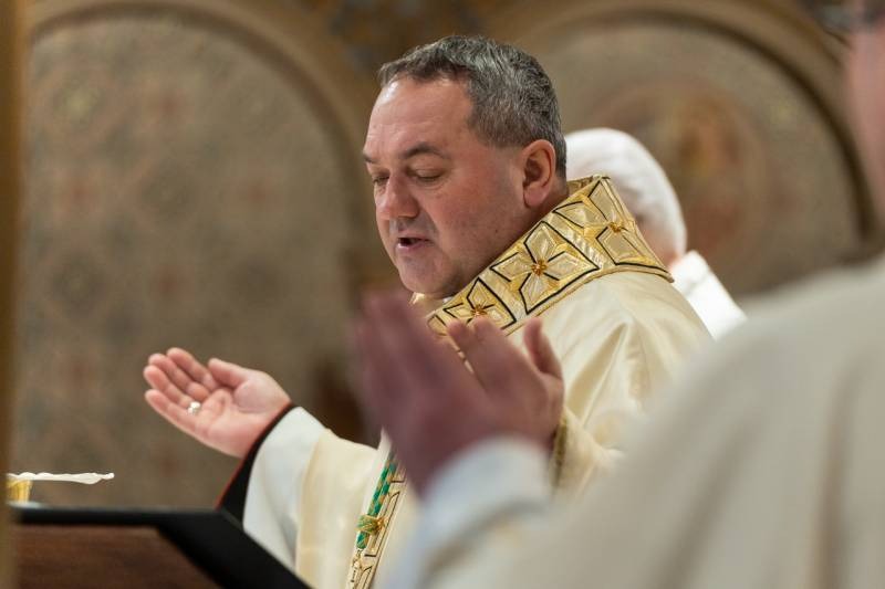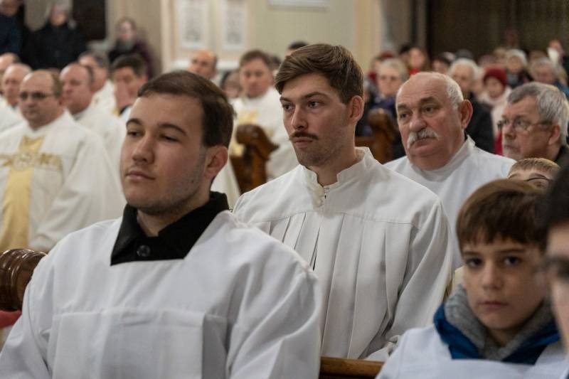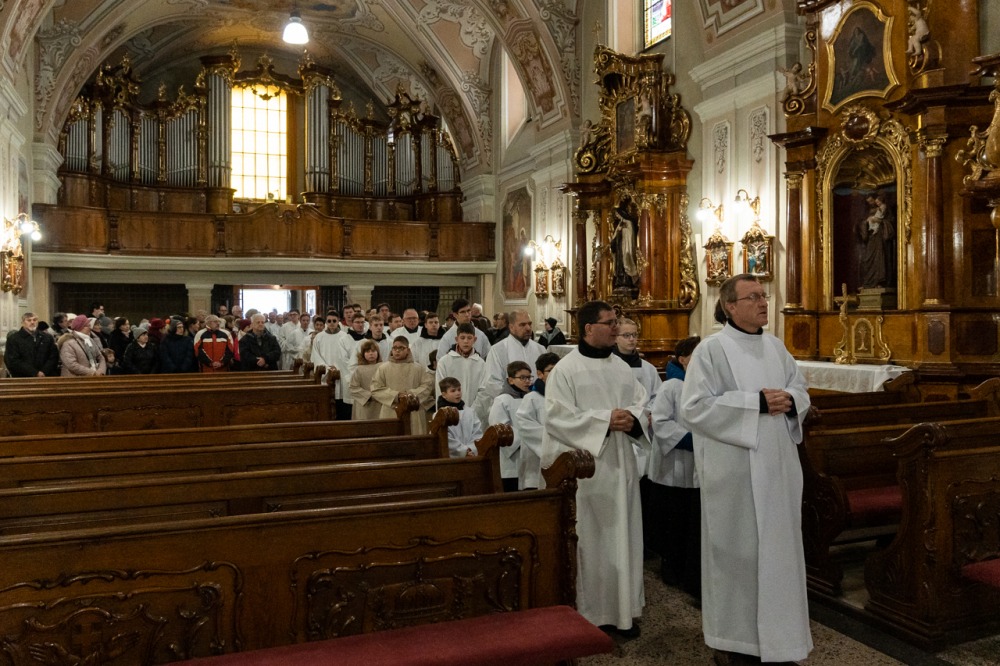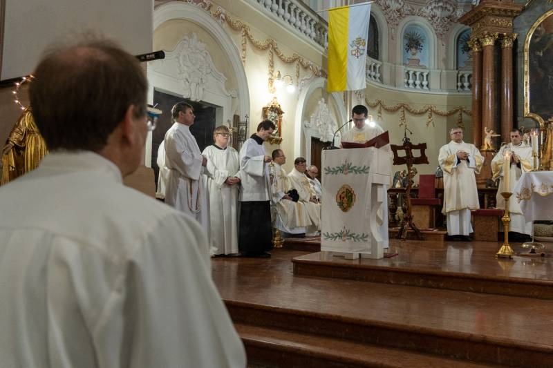 Az ünnepi a szertartás a pécsi Szent Ferenc-templomban kezdődött, ahova a püspöki palotából vonult át a papság és a teljes asszisztencia, aztán a hívekkel kiegészülve körmenetben érkeztek a a pécsi székesegyházba, ahol püspöki szentmisével folytatódott az egyházmegye szép ünnepe.