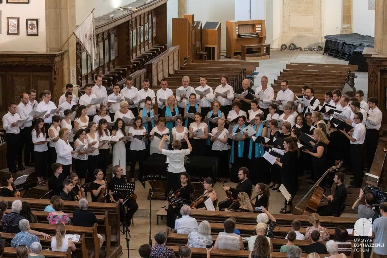 A zárókoncerten a részvevő együttesek egy-egy saját mű mellett két összkari darabot szólaltattak meg a Farkas utcai református templomban: