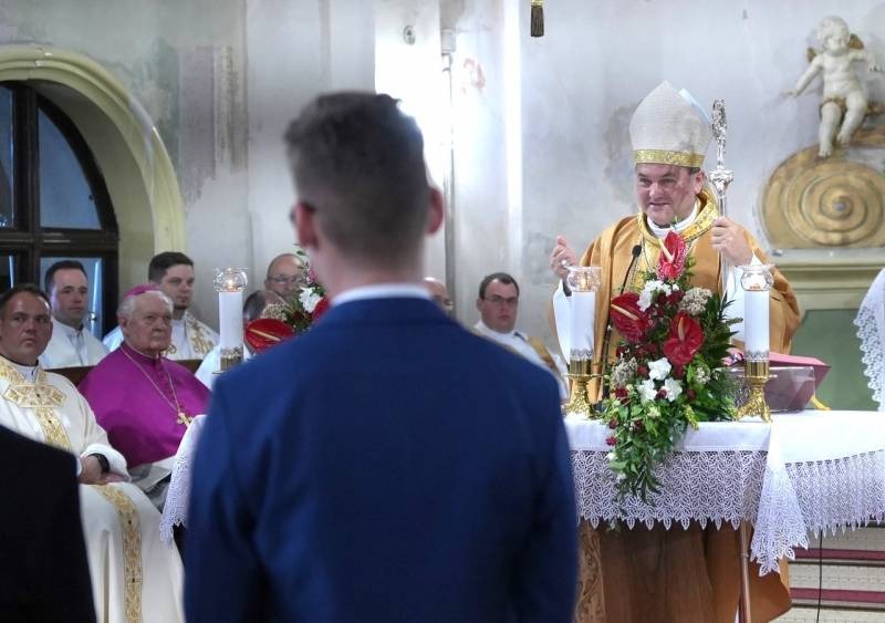 Egy olyan keresztényi úton indultok el, amelyen még nem járt senki, olyan ajándékot, szeretetet, emberi jóságot, szolgálatot és áldozatot kell átadnotok másoknak a hétköznapok csendes valóságában, amit kizárólag rátok bízott a Jóisten, és ez az ajándék teszi majd a családotokat és a közösségeteket élővé és gazdaggá. Hogyan tudjátok ezt megvalósítani – kérdezte a főpásztor? Ahogy Jézus mondta tanítványainak: „… a Szentlélek, akit majd a nevemben küld az Atya, megtanít benneteket mindenre és eszetekbe juttat mindent, amit mondtam nektek” (Jn 14,26). A hit, ami a szívetekben van, nem tudást jelent, hanem elindulni az Istennel, azaz átlépve a hit kapuján Istenben bízni és rá hagyatkozni, aki most rátok bízta az evangélium hirdetésének jövőjét, mert bízik bennetek.