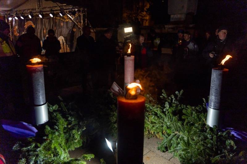 Advent 4. vasárnapjának előestéjén, december 21-én Felföldi László pécsi megyéspüspök a betlehemi lánggal gyújtotta meg Pécs város adventi koszorúján a negyedik, a szeretetet jelképező gyertyát.