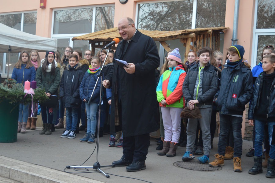 Az intézménybe járó gyerekek, pedagógusok és a családok évek óta szívesen vesznek részt a közös karácsonyi készülődésben. Az eseményen részt vett Bacsmai László mohácsi plébános, az intézmény püspöki biztosa, aki köszöntőjében az adventi jócselekedetek fontosságára hívta fel a résztvevők figyelmét. A Pro Musica kórus a Dona nobis kezdetű kórusművet adta elő, illetve az ünneplő tömeg együtt elénekelte a Csillagoknak teremtője kezdetű éneket. Az adventi koszorú második gyertyájának meggyújtása után az adventi vásár is megnyitotta kapuit, ahol meghitt karácsonyi zenék mellett szebbnél szebb portékák, finom ételek és forró italok várták a látogatókat.