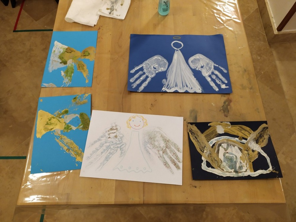 Ezt követően a kicsik egy pohár forró tea mellett megmelegedve erőt gyűjtöttek, majd különböző technikával angyalokat készítettek a Püspöki Kincstár múzeumpedagógiai műhelyében.