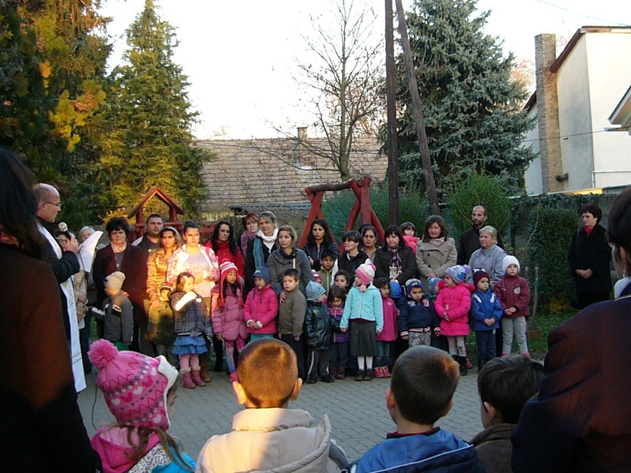 Az óvoda udvarán egybegyűlt gyerekeknek, szüleiknek és a vendégeknek Kutas Attila plébános idézte fel Szent Erzsébet életét és alakját, aki az irgalmasság és jóság példájaként áll előttünk.