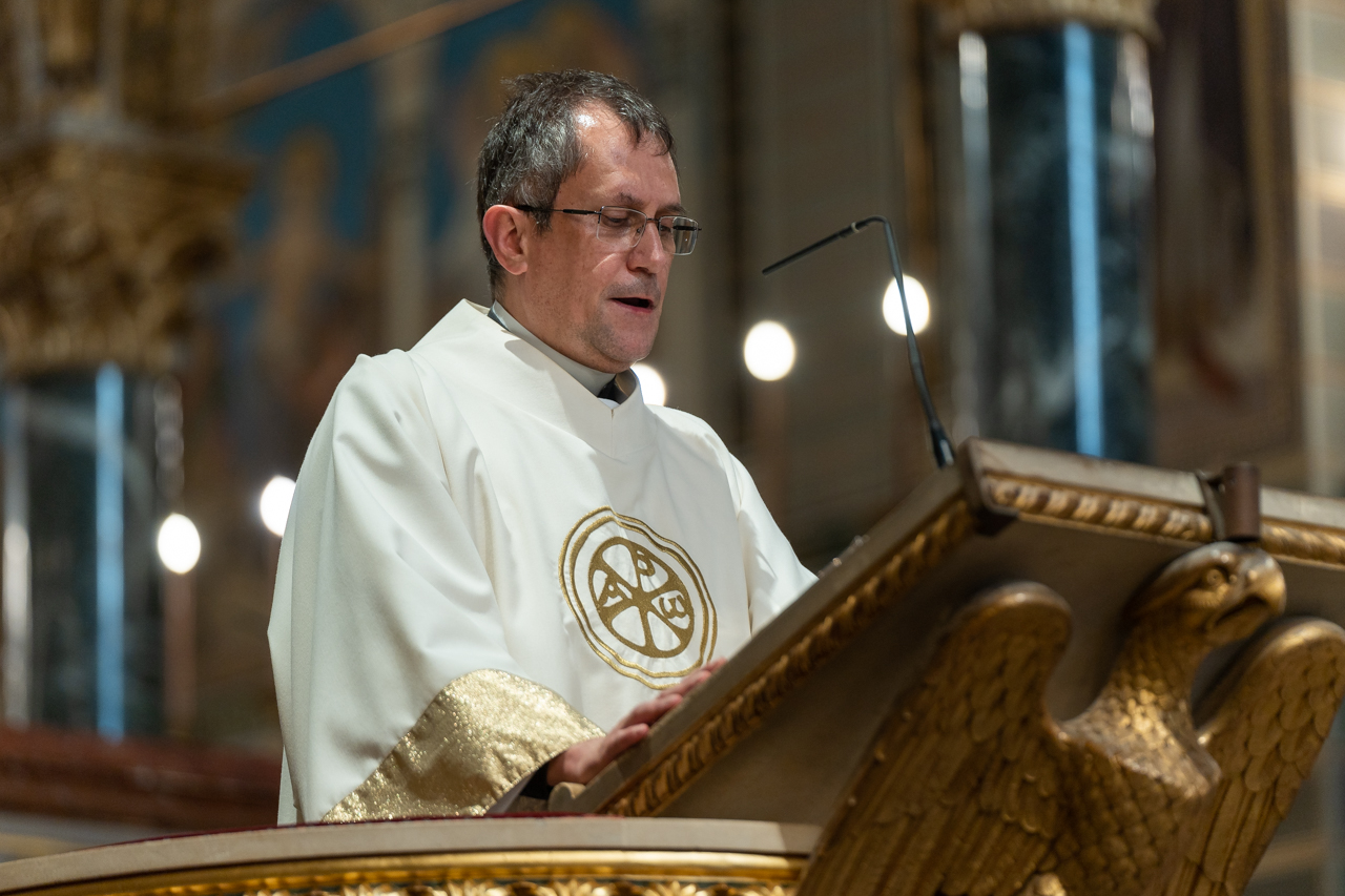 Az emberi élet titka az alap, amire építkezünk, a keresztény életnek pedig a feltámadás, aminek üzenetét lélektől lélekig adunk át – kezdte szentbeszédét Felföldi László püspök. Majd hozzátette, hogy ebben a láncolatban az elhunyt püspökeink nemzedékről nemzedékre adták át a feltámadás örömhírét és a krisztusi élet szolgálatát. Különleges és eltérő karakterek voltak, tudósok és lelki emberek, de mindnyájuk életének lényege, sorsuk központi üzenete: Krisztus feltámadt.
