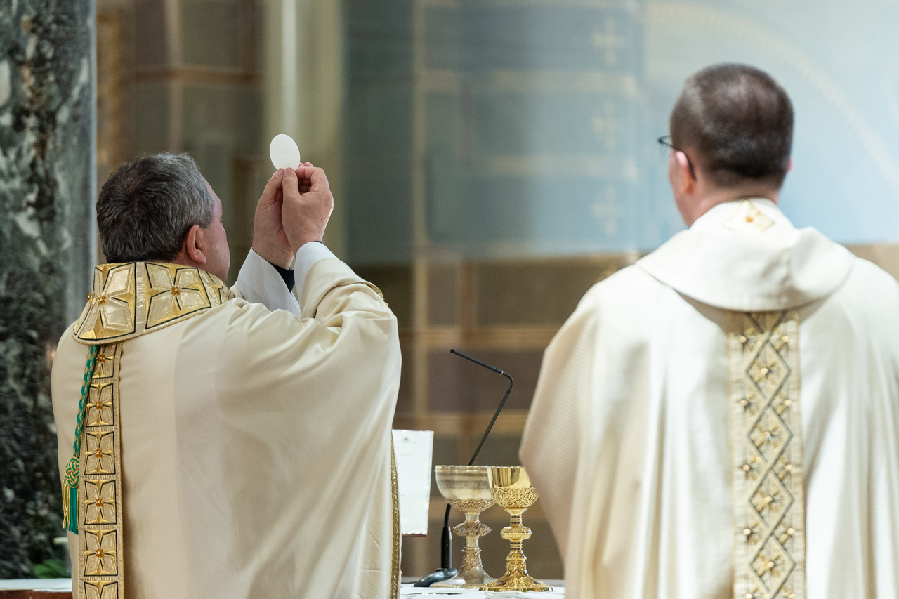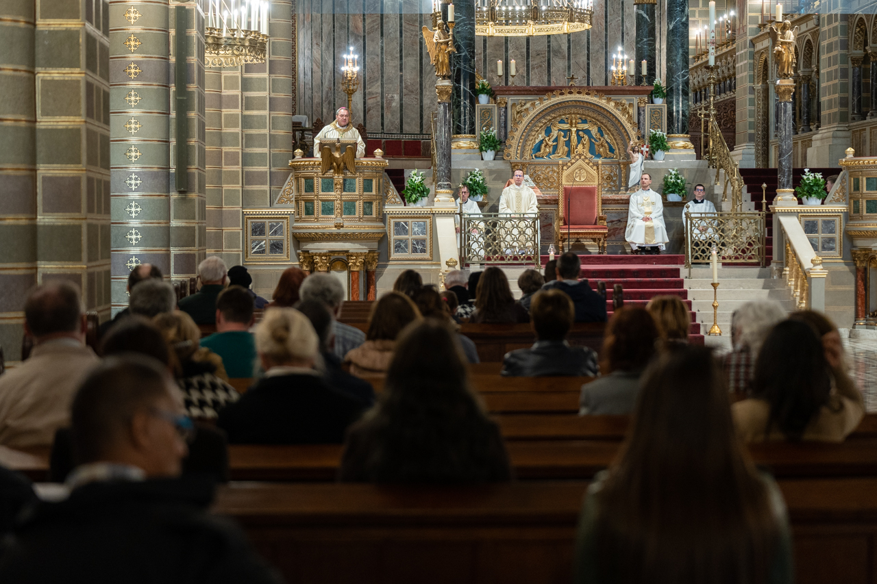 Krisztus szenvedése, halála és feltámadása után a tanítványok együtt voltak, dicsőítették Istent és az Úr küldött hozzájuk új szíveket, ezt kell nekünk is megvalósítani a keresztény közösség teljességéért. Életünk forrását, mely nem parancs és nem előírás, vesztettük el és ezt kel újra megtalálni a család belső megtartó erejében, a keresztény közösség összetartásában. Ez pedig azon múlik, hogy lelkileg, szellemileg és testileg hogyan tápláljuk magunkat annak érdekében, hogy megmaradjunk emberi méltóságban, családi és krisztusi közösségben – fogalmazott homíliájában a főpásztor.