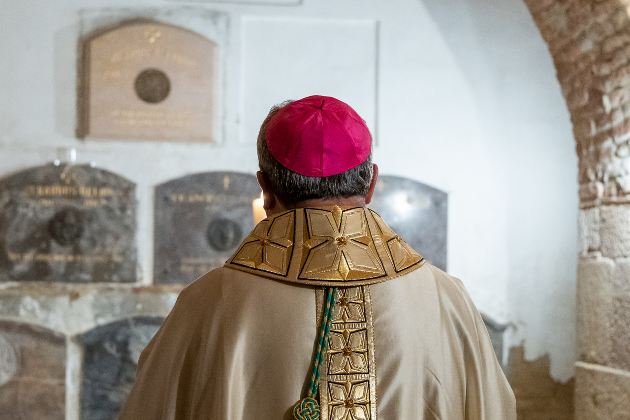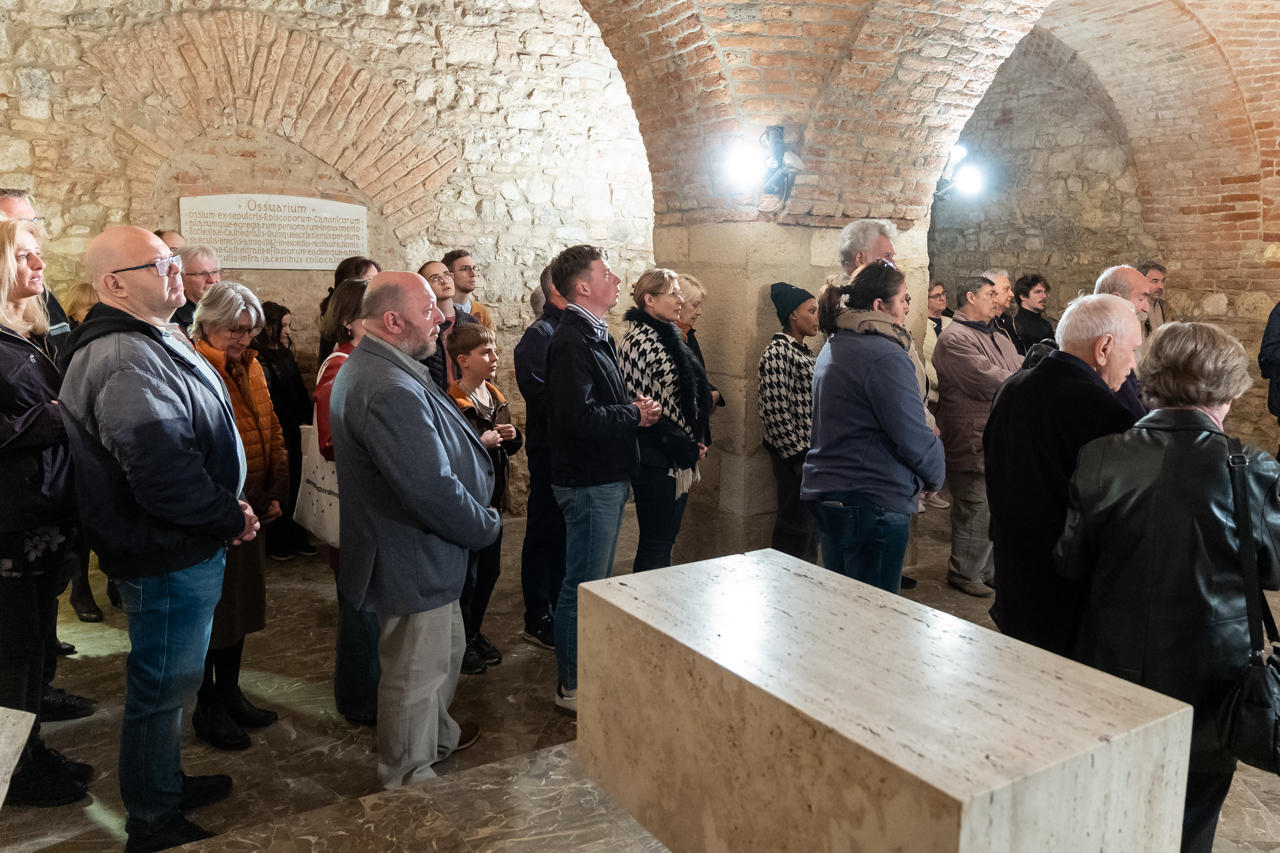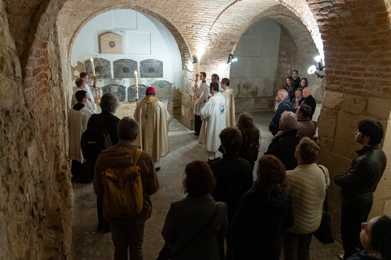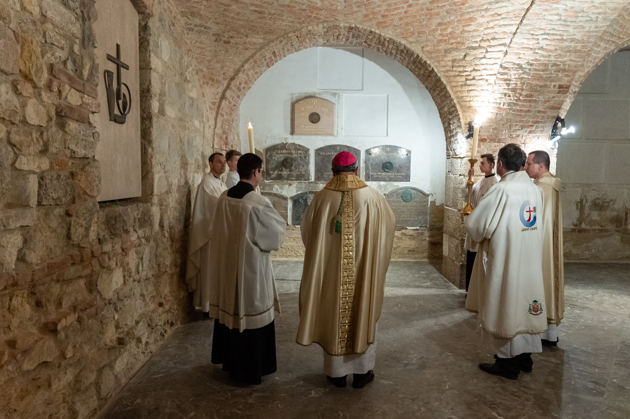 A szentmise után a papok és az asszisztencia kíséretében a hívek az altemplomon keresztül a püspöki kriptába vonultak, ahol egy rövid imádsággal fohászkodtak egyházmegyénk elhunyt főpásztoraiért.
