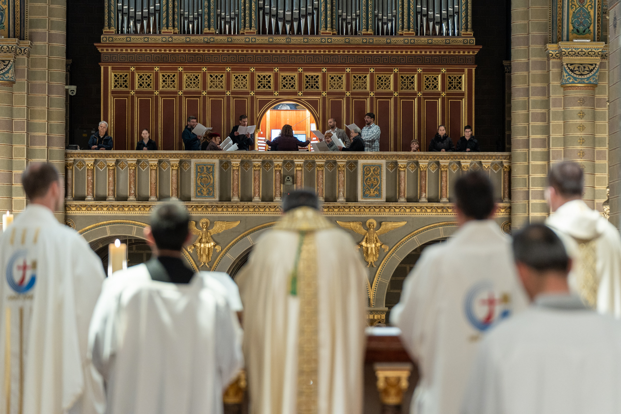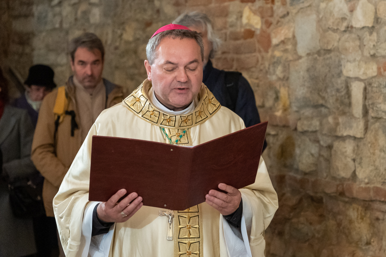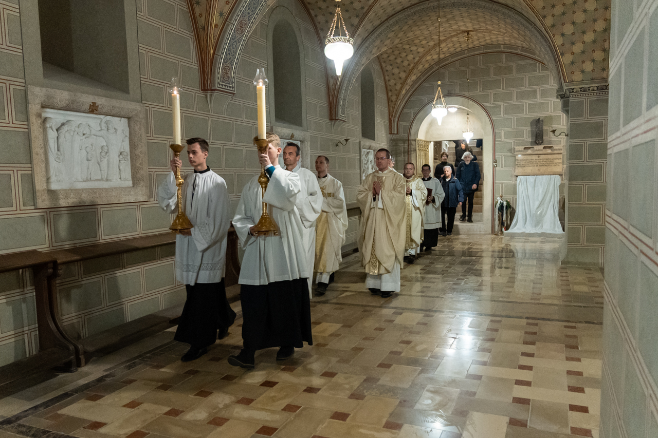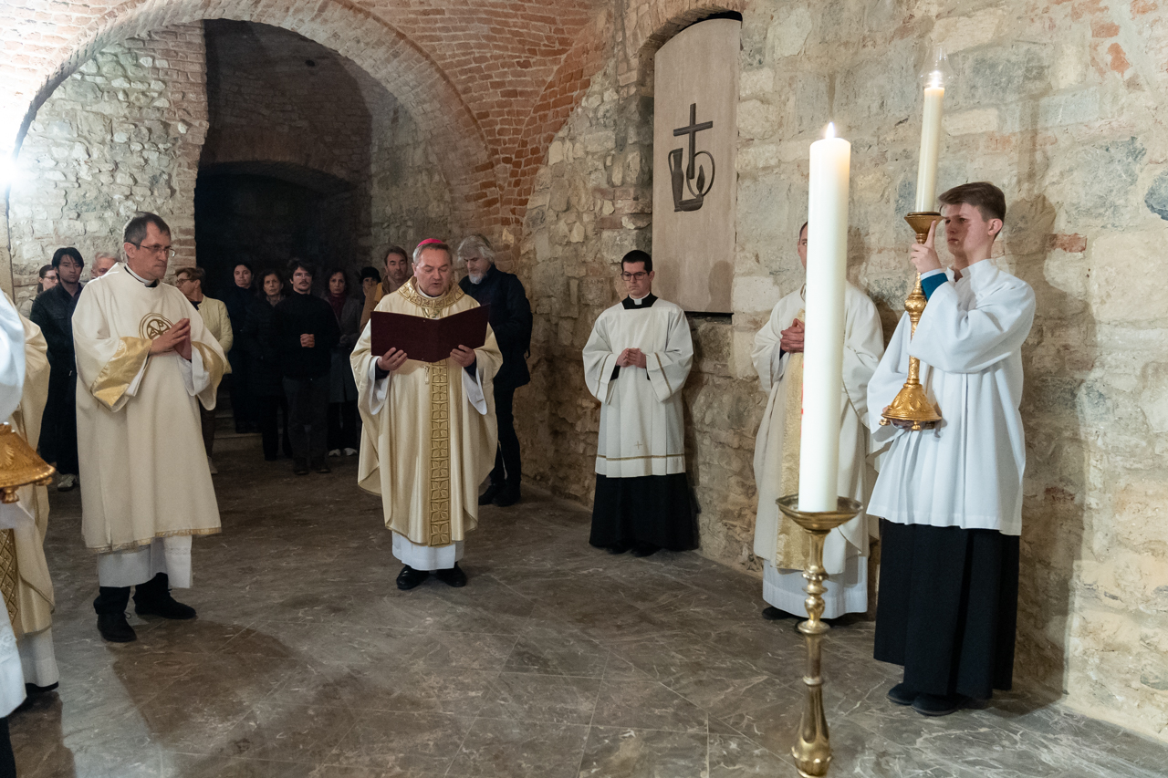 A szentmise után a papok és az asszisztencia kíséretében a hívek az altemplomon keresztül a püspöki kriptába vonultak, ahol egy rövid imádsággal fohászkodtak egyházmegyénk elhunyt főpásztoraiért.