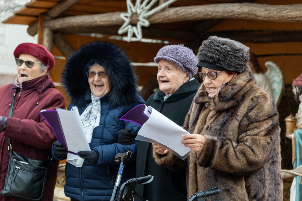 A Pécsi Egyházmegye fenntartásában működő Szent Lőrinc Gondozóotthon lakóinak kórusa énekelt Pécsen, a Széchenyi téren felállított karácsonyfa és betlehem mellett december 3-án.