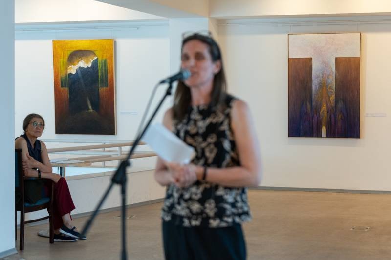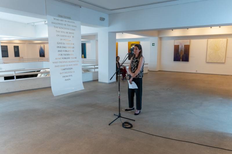 Hegyi Csaba festőművész, egyetemi tanár a kiállításon bemutatott alkotások méltatásában arról beszélt, hogy a művész a sok kép közül, melyek az élete során a Miatyánk imádsághoz kapcsolódóan a fejében megszülettek, most megmutat néhányat. A kép, a festészet és a művészet hatalma abban áll, hogy amit a művész megmutat nekünk, segítségünkre lehet abban, hogy az imádság szavai bensőnk csöndjében még jobban hallhatók és érthetők legyenek, és formálódjanak.